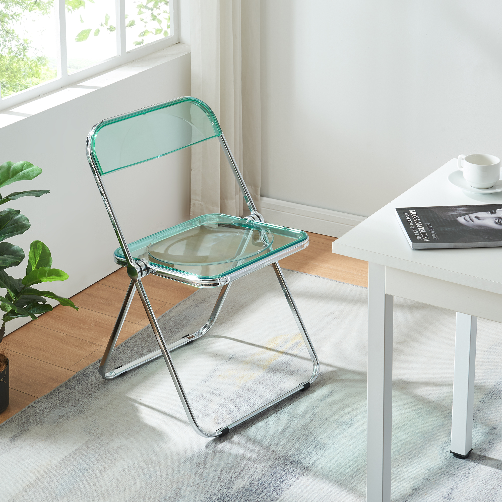 Setul de 4 scaune pliabile Pornainen este alegerea ideală dacă îți dorești scaune pliabile practice, moderne și ușor de depozitat. Cu un design contemporan în nuanță verde mentă transparent, aceste scaune adaugă un accent elegant în dining, bucătărie, living sau birou.