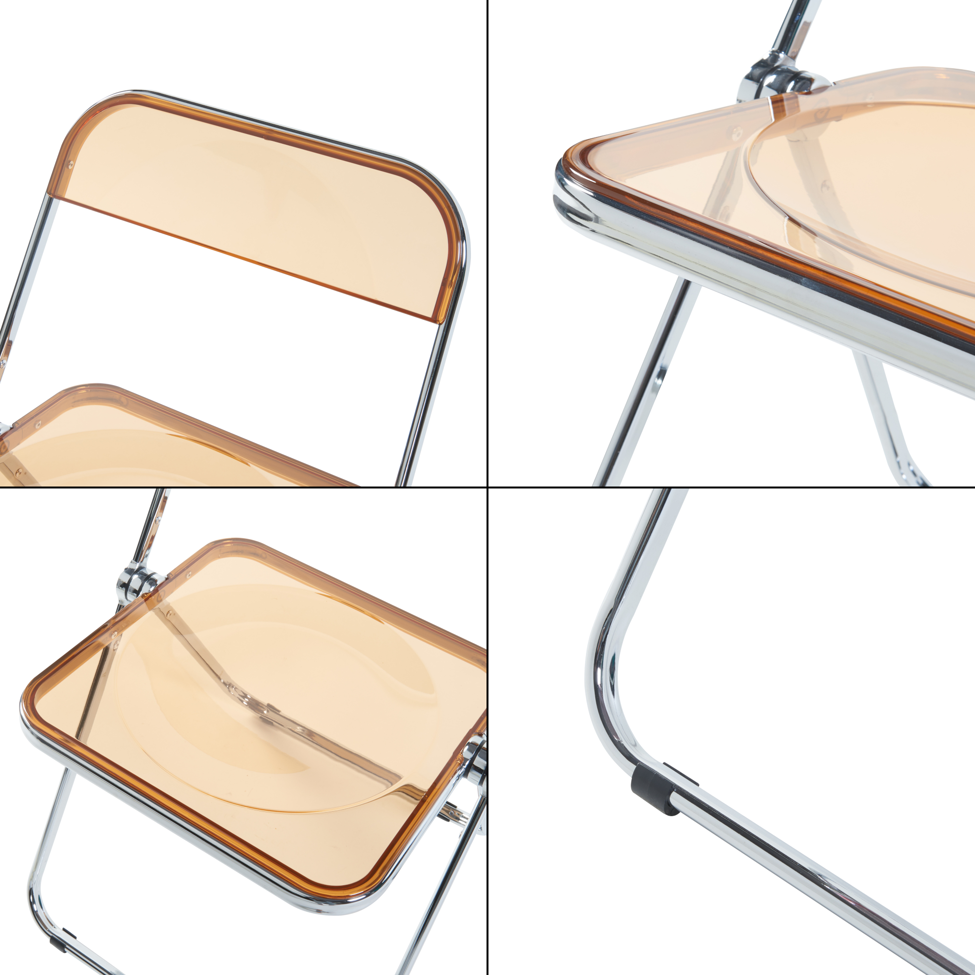 Setul de 4 scaune pliante Pornainen este alegerea potrivita daca iti doresti scaune pliante practice, moderne si usor de depozitat. Cu un design transparent in nuanta portocalie si un cadru metalic cromat, aceste scaune aduc un plus de stil in locuinta sau la birou, fara sa ocupe mult spatiu.