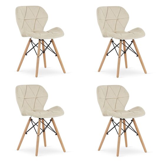 Set 4 scaune stil scandinav, Artool, Lago, catifea, lemn, bej, 47x52x74 cm GartenVIP DiyLine