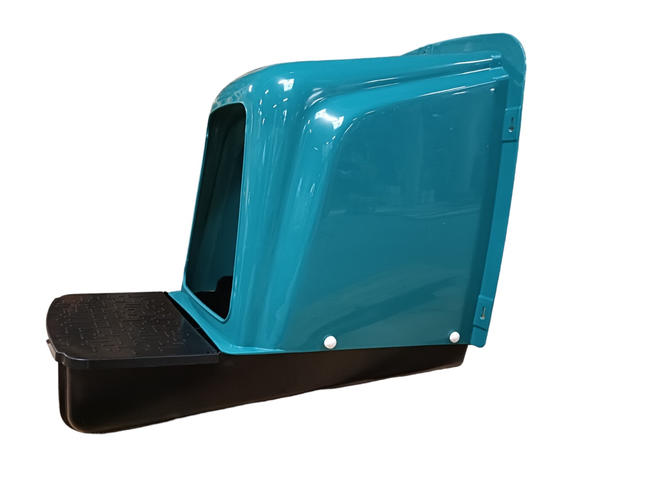 Carcasa oferă intimitate găinilor în timpul ouatului, iar tava/colectorul din față face verificarea și strângerea ouălor mai comodă, fără să deranjezi păsările.