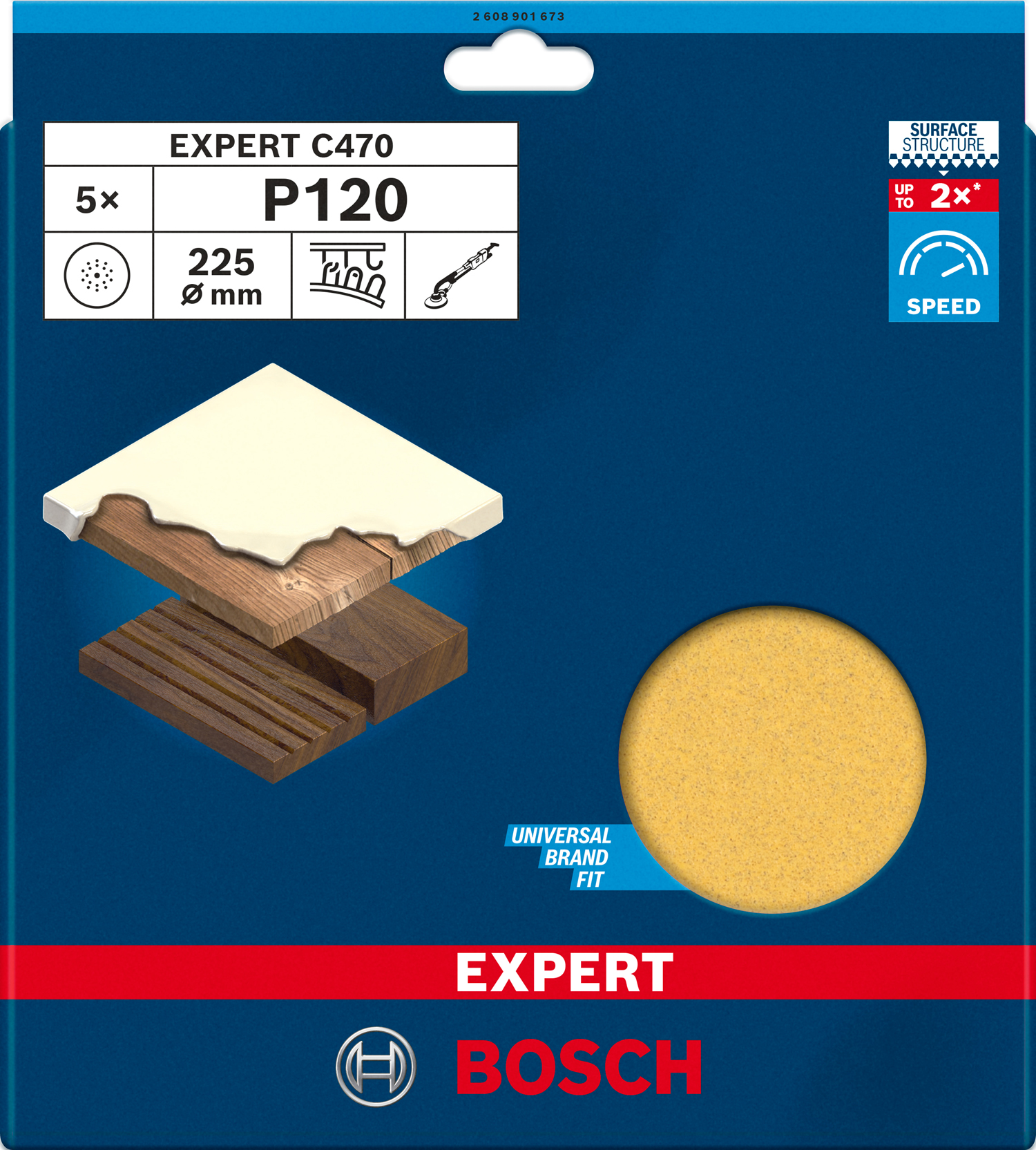 Set 5 foi abrazive Bosch C470, 225 mm, granulație 120, 19 orificii