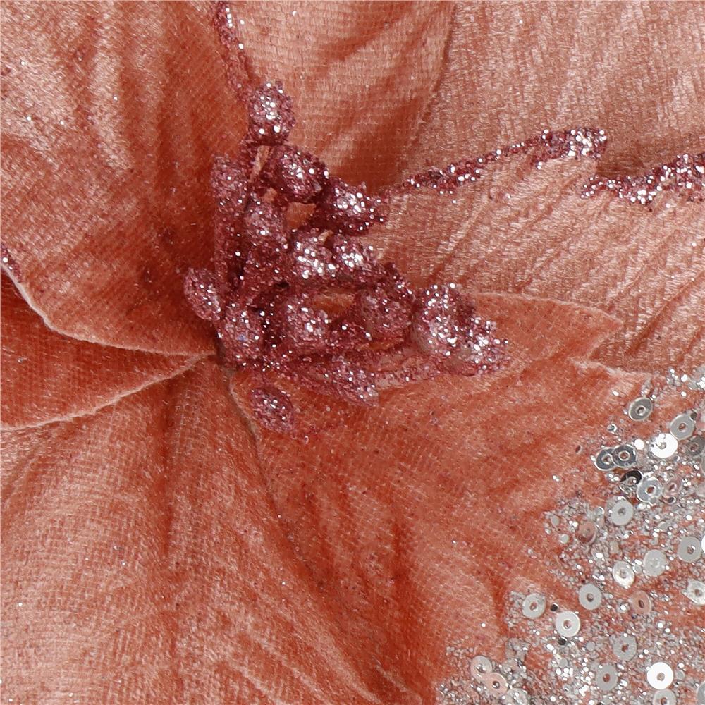 Set 5 ornamente pentru brad Poinsettia 26 cm, roz argintiu cu clips