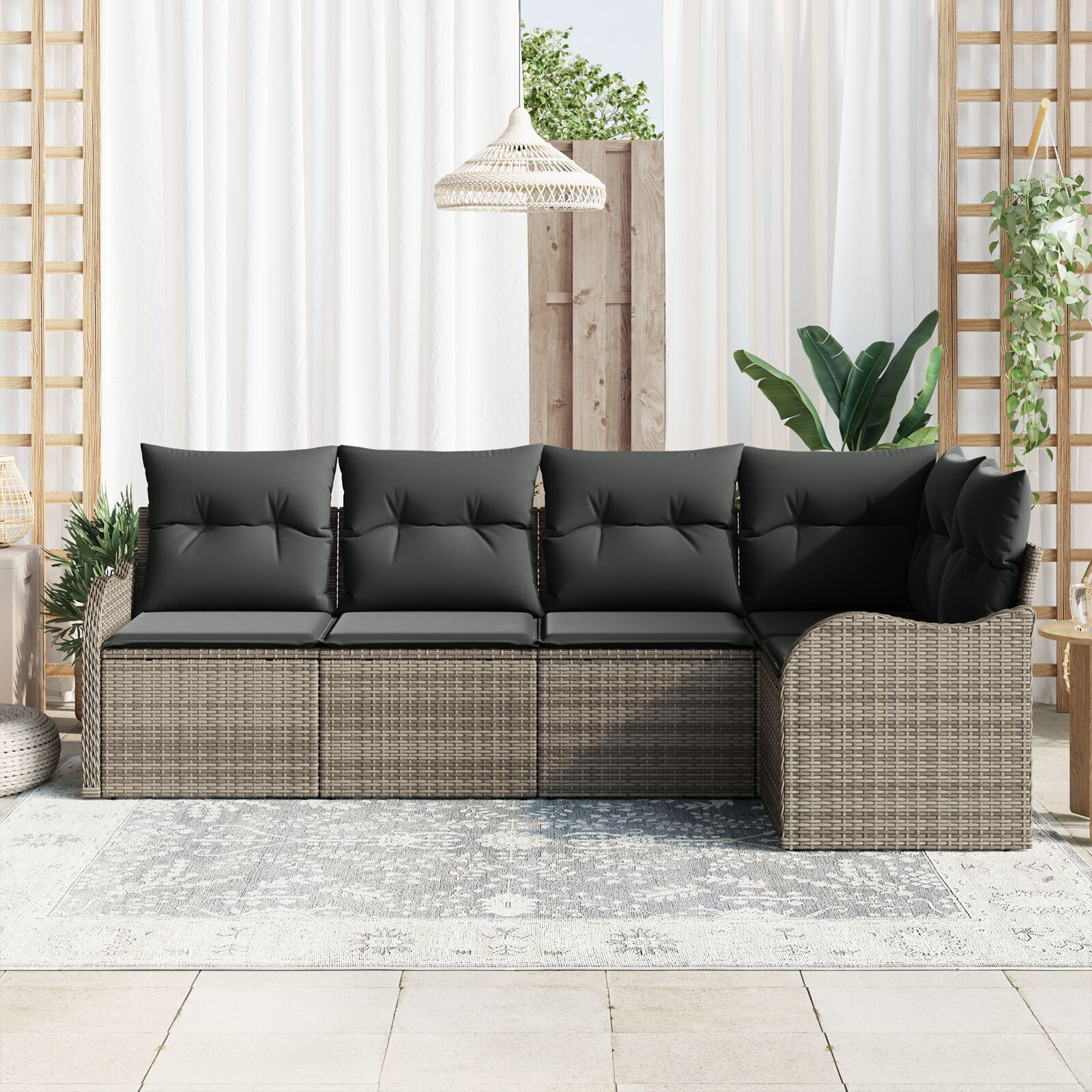 Set 5 Piese Canapea Grădină cu Pernițe Gri Poliratan, Canapea Grădină 2 Locuri cu Pernițe Gri Poliratan GartenMobel Dekor