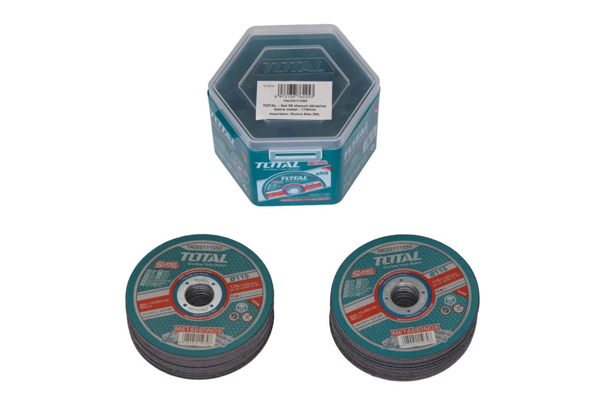 Set 50 discuri abrazive pentru tăiere metal 115 mm, pentru polizor unghiular TOTAL