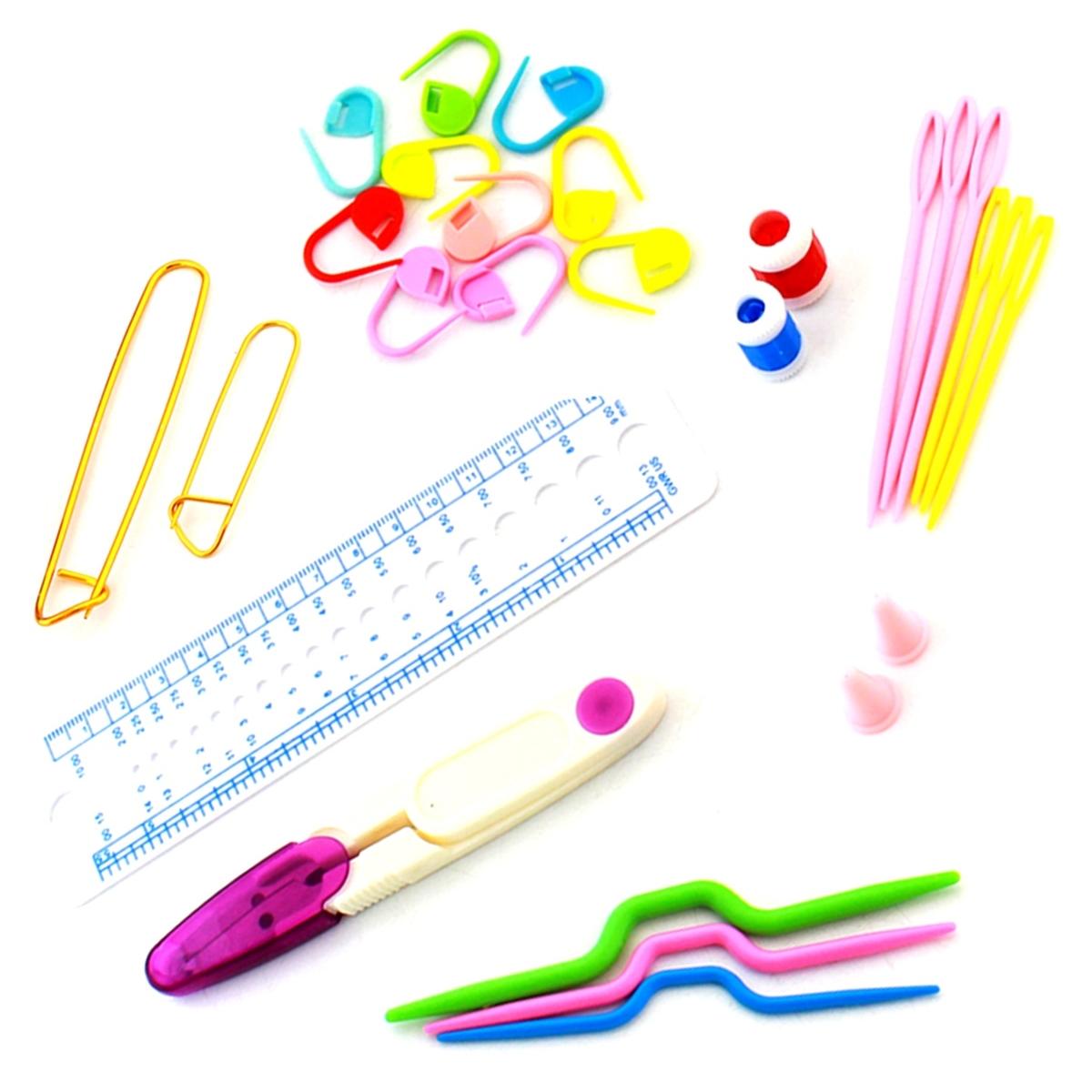 - O mulțime de accesorii suplimentare (ace de siguranță, ace, foarfece, riglă).