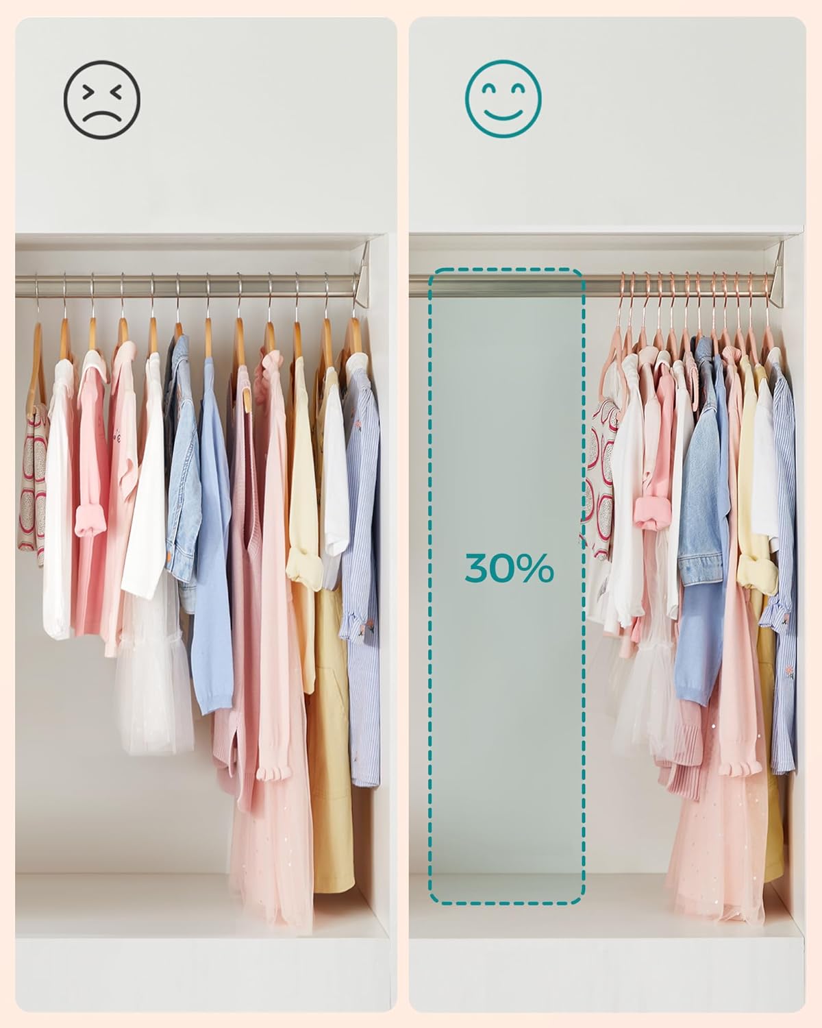 Utilizare recomandată: ideale pentru rochii, tricouri, cămăși, hanorace ușoare, fuste sau pantaloni de copii. Pot fi folosite acasă, în dressing, în camera copilului sau pentru organizarea sezonieră a hainelor.