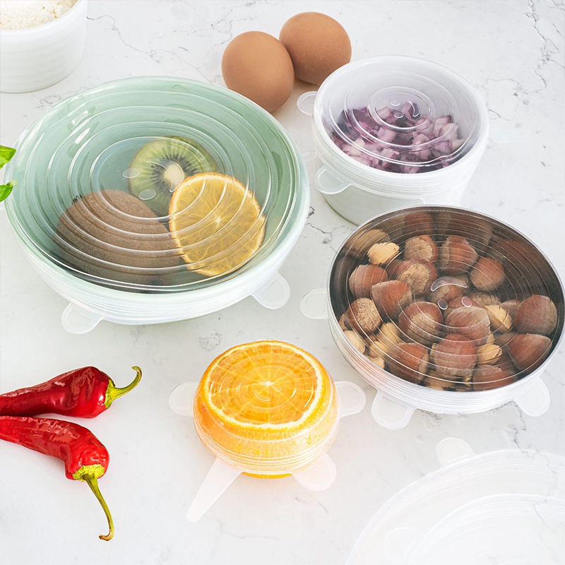 Set de capace care ajută la păstrarea prospețimii alimentelor, blochează mirosurile Flexibilitate ridicată de adaptare la recipiente de diferite dimensiuni Ochiurile proeminente facilitează punerea și scoaterea capacului Rezistent la temperaturi înalte și scăzute Se poate spăla în mașina de spălat vase Material: silicon Temperatura de lucru: - 40°C ... + 230°C Dimensiuni: 6,5 cm, 9,5 cm, 11,5 cm, 14,5 cm, 16,5 cm, 20,5 cm