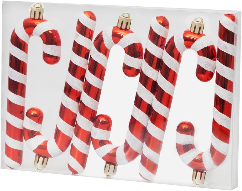 Set 6 decorațiuni de Crăciun tip acadea pentru brad, roșu-alb, 12,5 cm