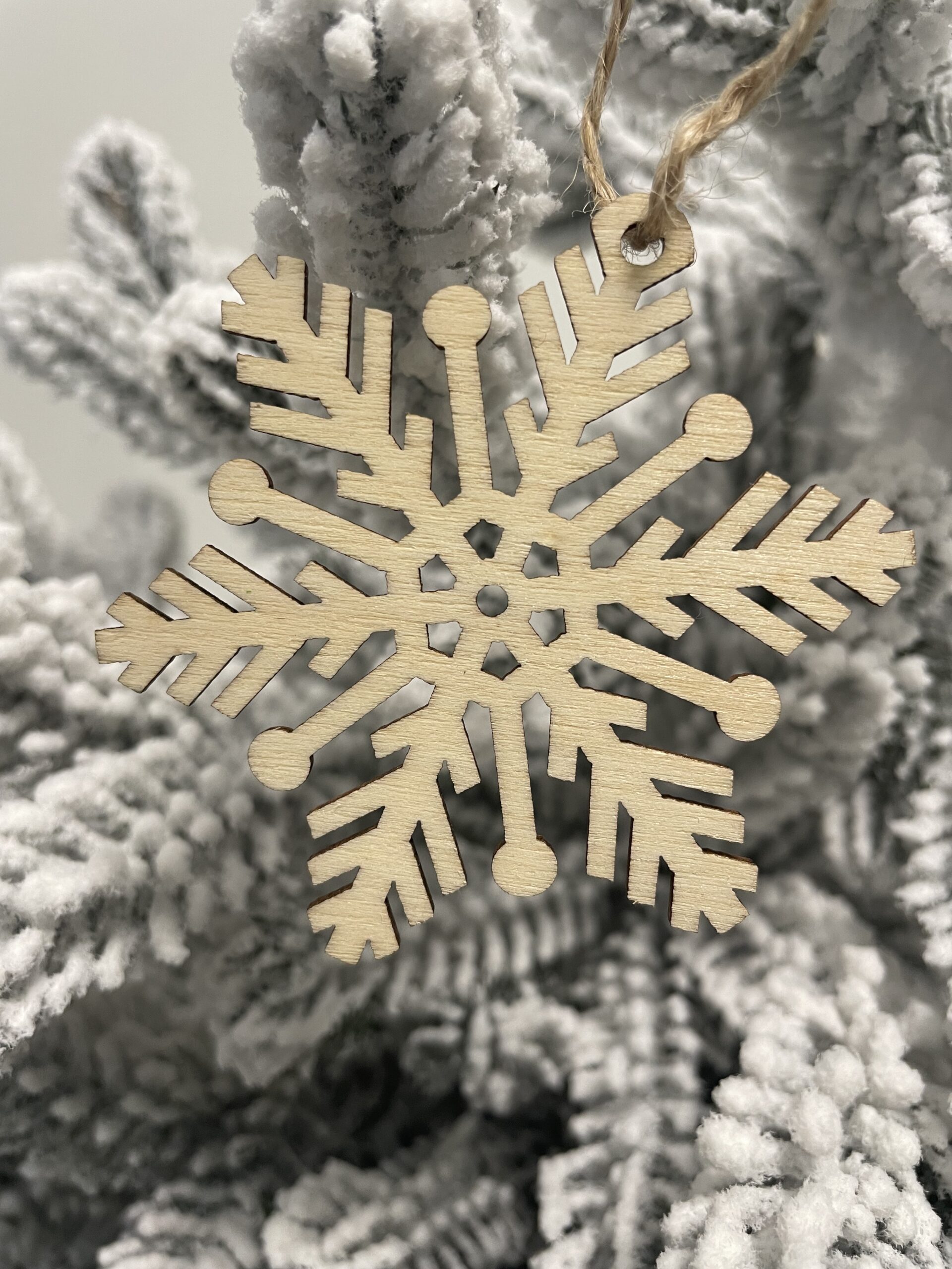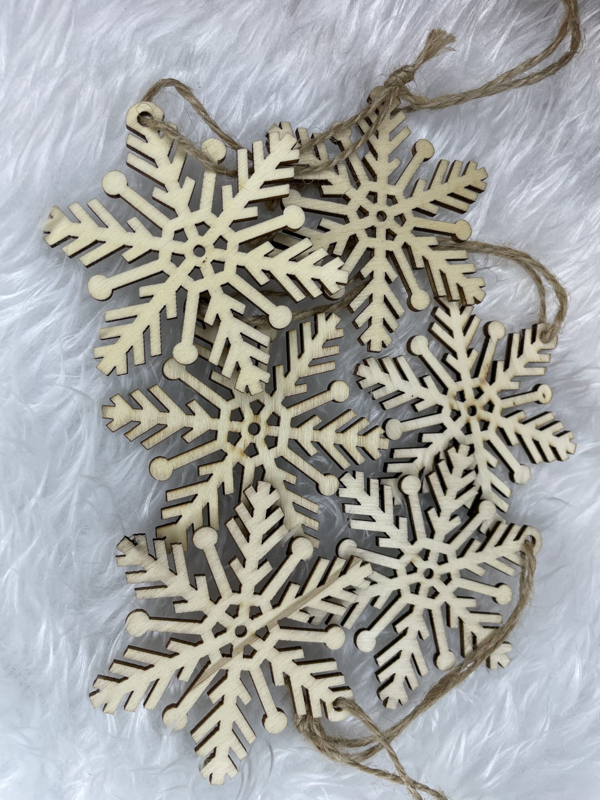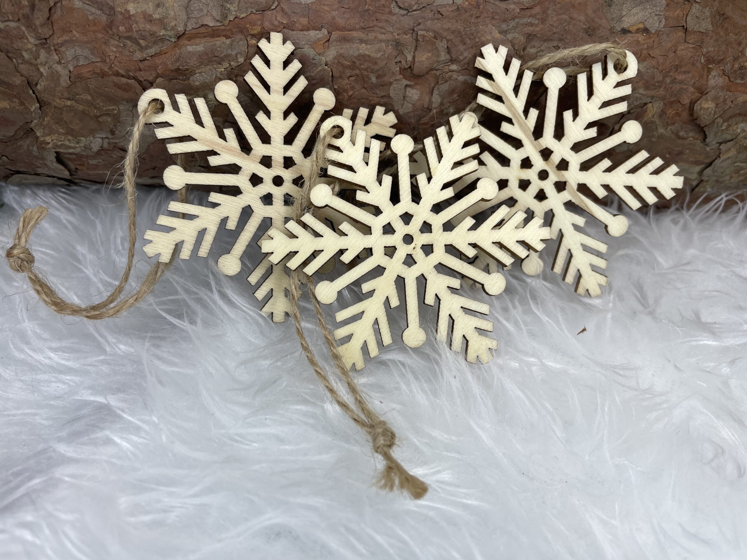 Set 6 decoratiuni pentru brad din lemn, fulg de zapada, natur
