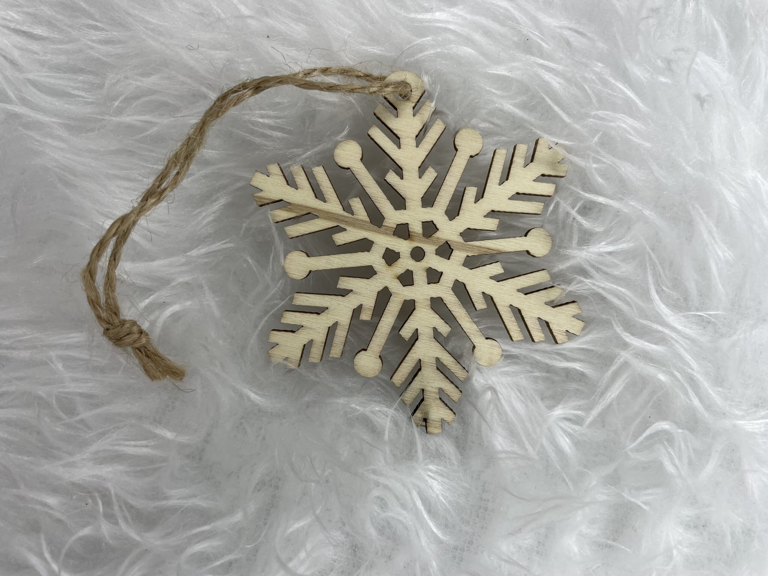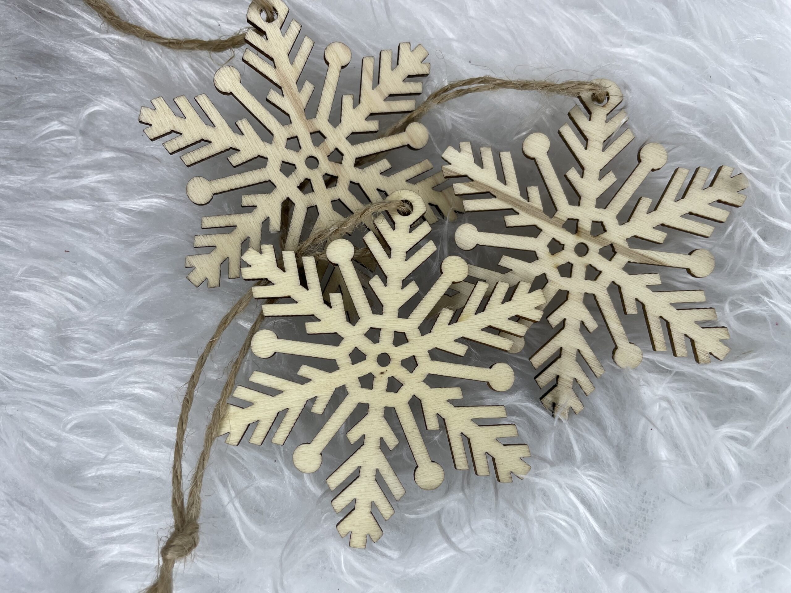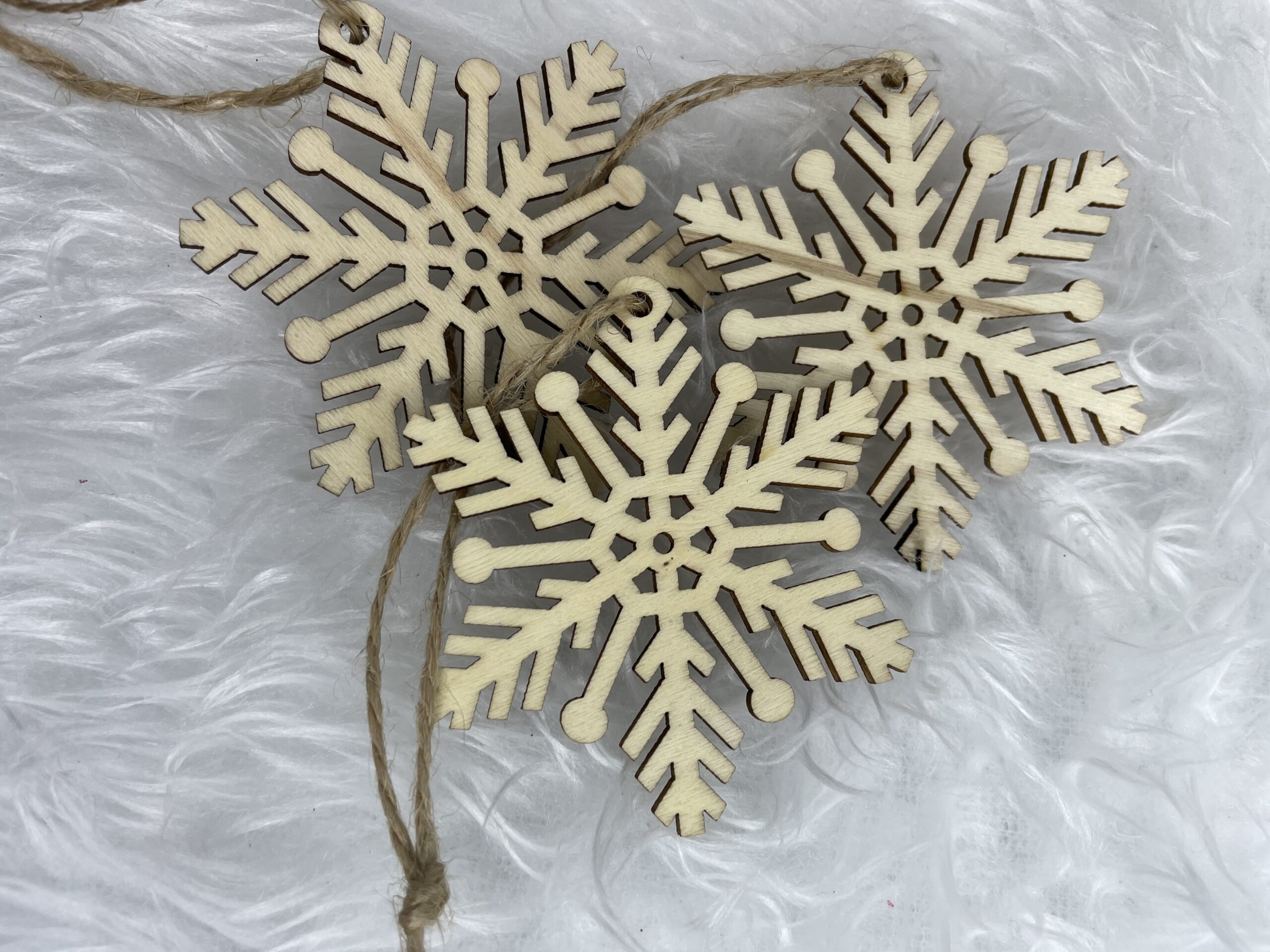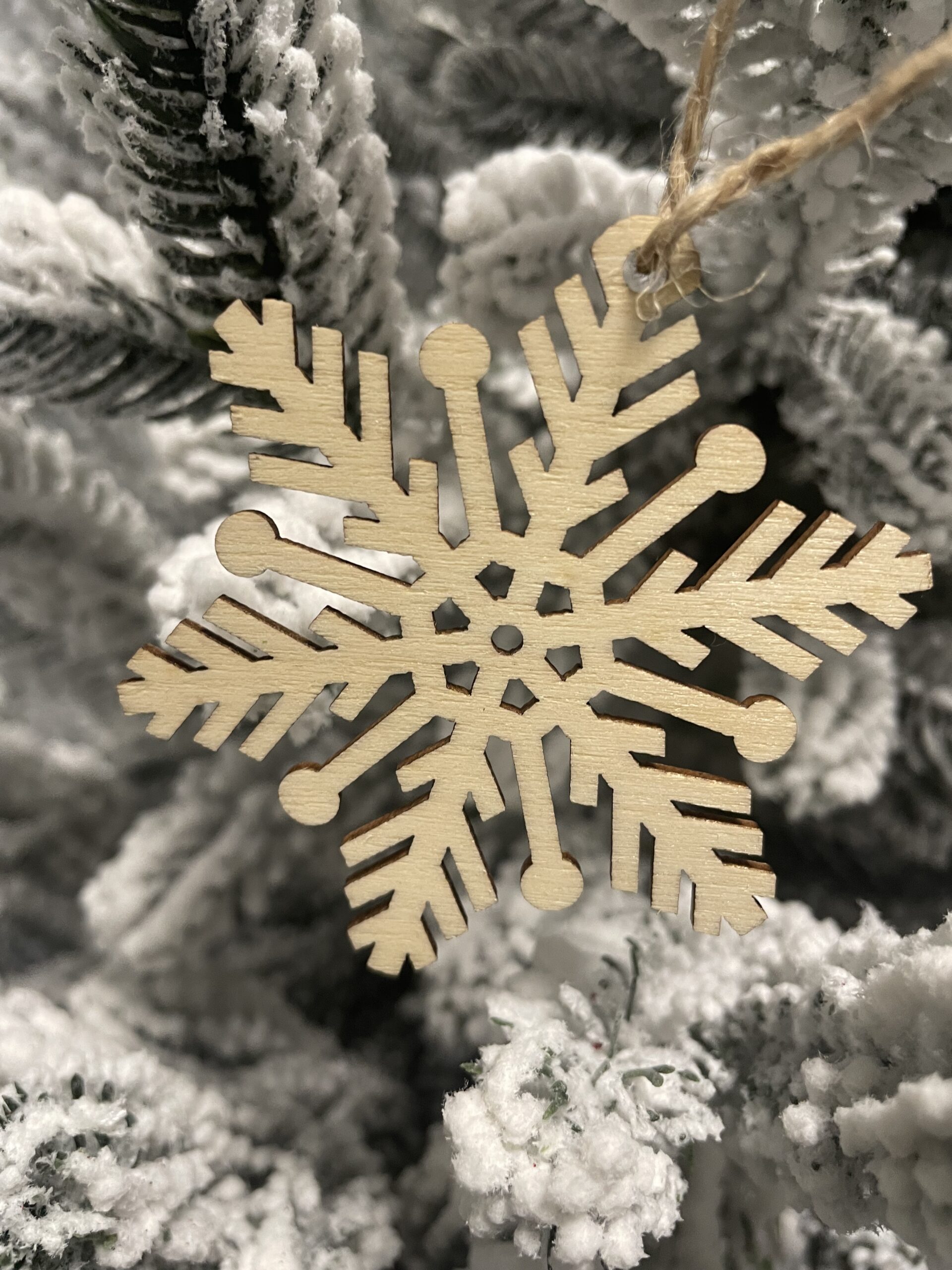 Set 6 decoratiuni pentru brad din lemn, fulg de zapada, natur