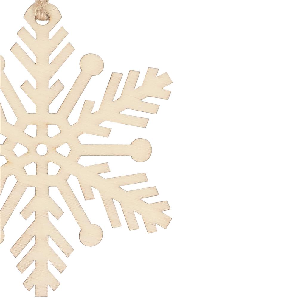Adauga un farmec cald si natural bradului tau cu acest set de decoratiuni pentru brad din lemn, realizat in forma de fulg de zapada. Potrivite pentru decorul de Craciun in stil rustic, aceste ornamente sunt usor de agatat si rezistente, fiind o alegere inspirata pentru casele cu copii sau animale de companie.