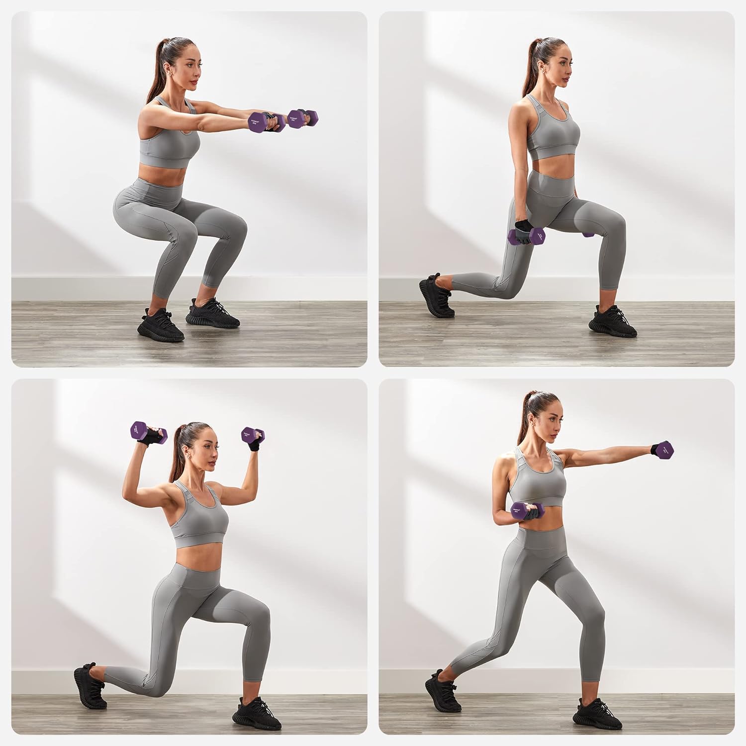 Utilizare: perfecte pentru exercitii de tonifiere, incalzire, cardio usor, pilates, aerobic si dezvoltarea treptata a fortei musculare. Pot fi folosite atat de incepatori, cat si de cei care doresc un set compact pentru antrenamente zilnice.