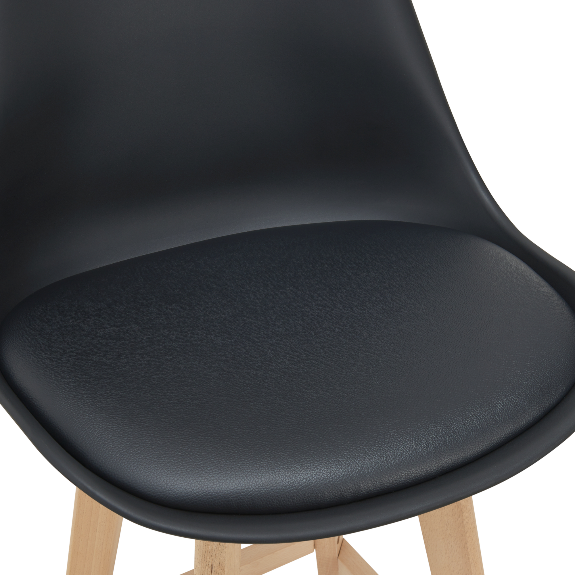 Fiecare scaun este conceput pentru o ședere confortabilă, având șezut tapițat și formă ergonomică. Structura stabilă din lemn de fag oferă rezistență bună în utilizarea de zi cu zi, iar combinația dintre șezutul negru și picioarele din lemn natur creează un aspect modern și ușor de integrat în diverse stiluri de mobilier.