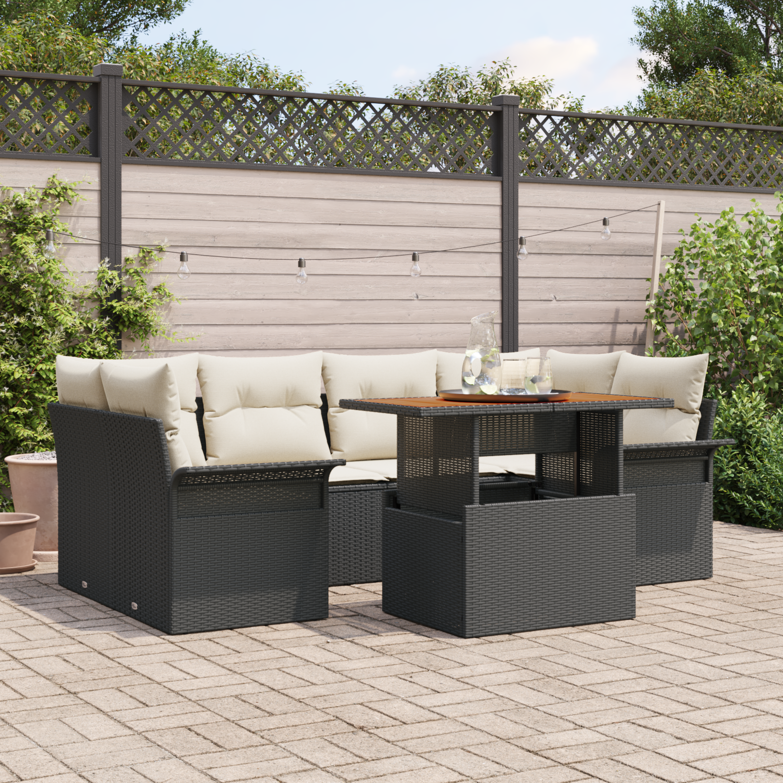 Set 7 piese canapea grădină cu perne Negru Ratan Poli, Canapea grădină 2 locuri cu spațiu de depozitare și perne Negru Ratan Poli GartenMobel Dekor