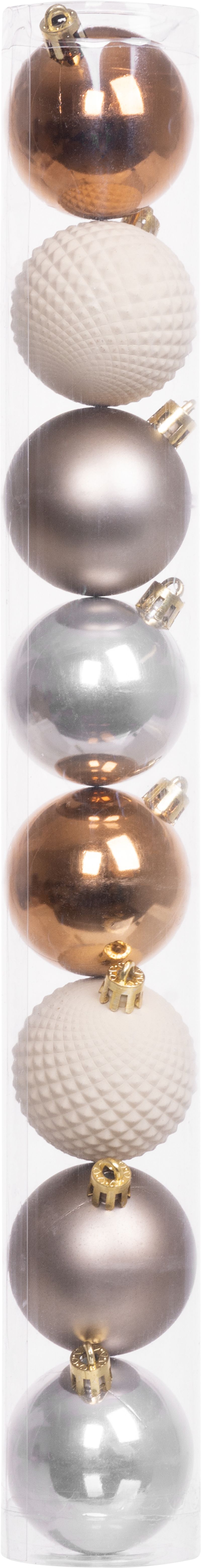 Set 8 globuri de Craciun pentru brad, alb-argintiu-bronz, 5 cm