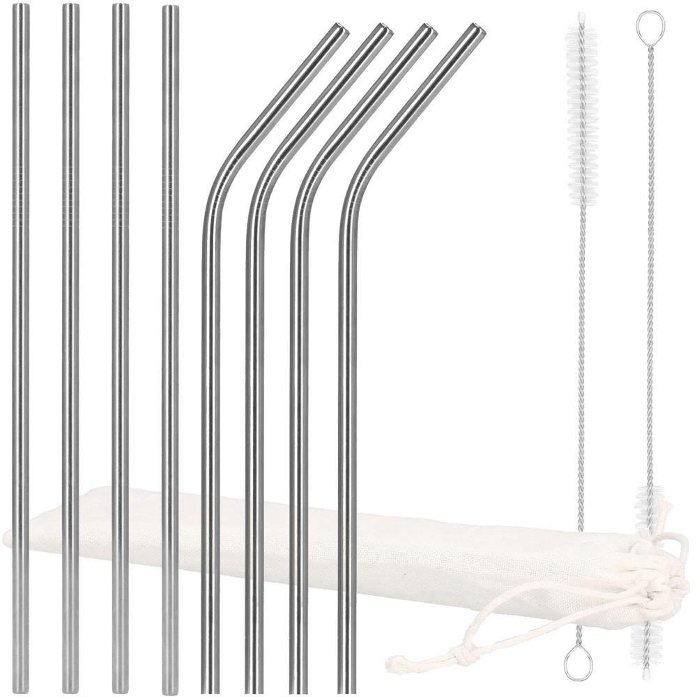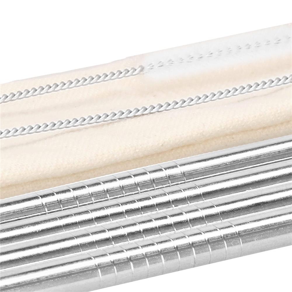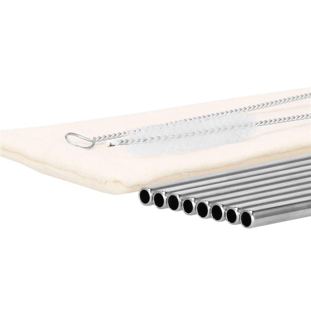 Set 8 paie metalice reutilizabile din inox, argintii, cu husa si perii
