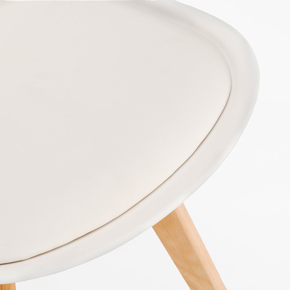 Sezutul este realizat din polipropilena (PP) durabila, iar perna tapitata cu material sintetic tip PVC ofera confort si intretinere usoara. Picioarele din lemn de fag adauga stabilitate si un aspect cald, natural. Sunt o alegere practica pentru mesele de zi cu zi, dar si pentru intalniri mai lungi cu familia sau prietenii.
