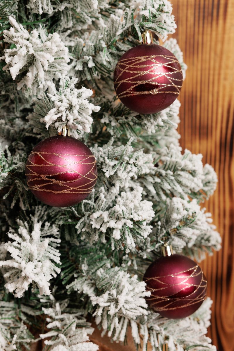 Adauga un plus de eleganta decorului festiv cu acest set de globuri pentru brad de Craciun in nuanta bordo mata, decorata fin. Potrivite pentru amenajarea unui brad clasic sau modern, aceste globuri bordo ofera un aspect rafinat si armonios, fiind ideale pentru casa, birou sau spatii comerciale.