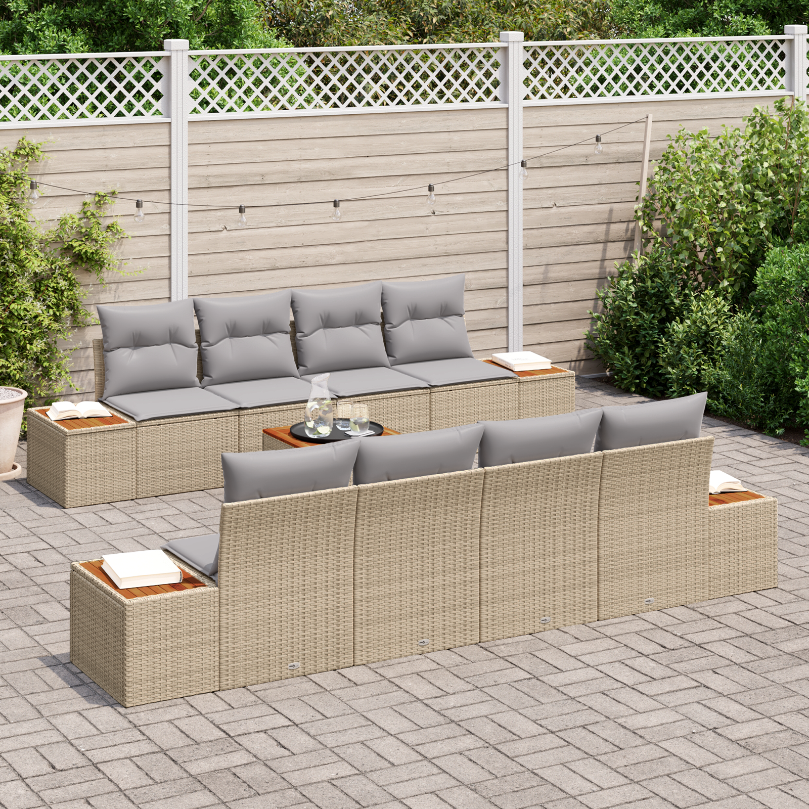 Set 9 piese canapea grădină cu perne bej din ratan poli și acacia GartenMobel Dekor