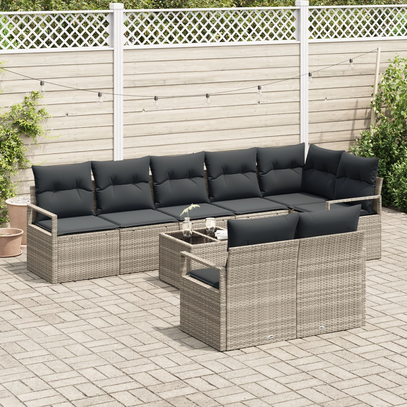Set 9 Piese Grădină cu Pernă Gri Poliratan , Canapea Grădină cu Pernă Gri Poliratan GartenMobel Dekor