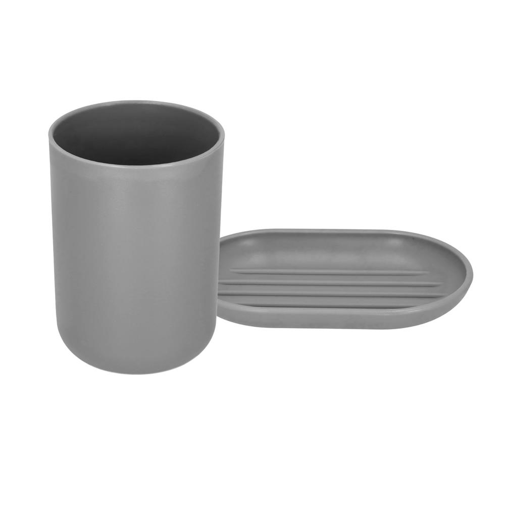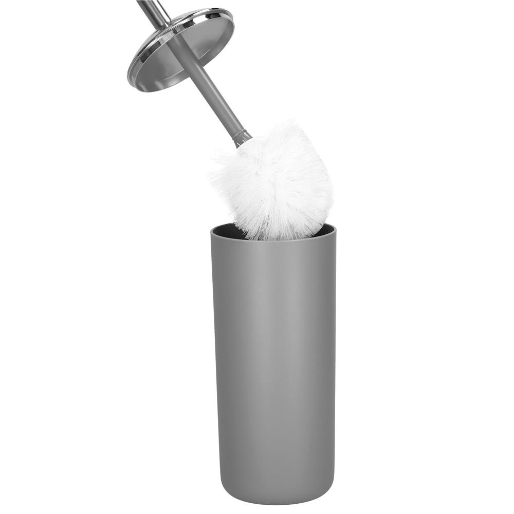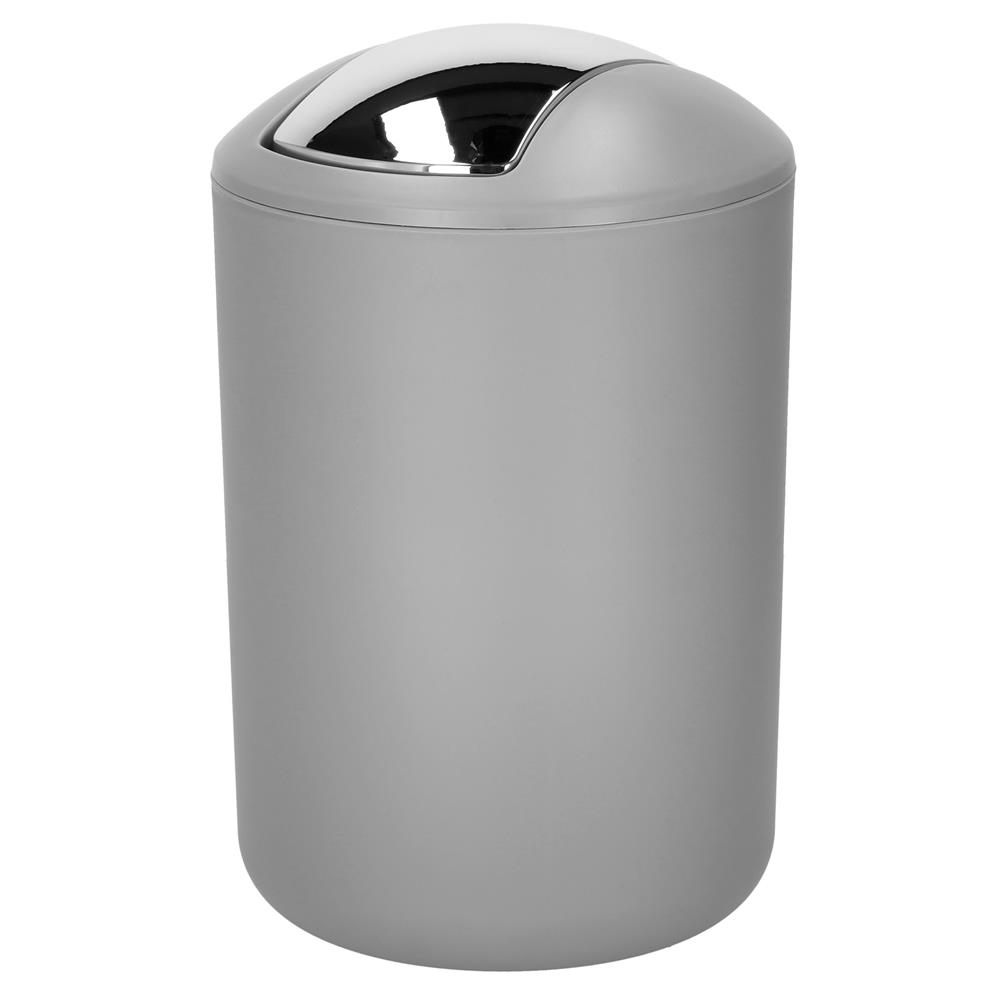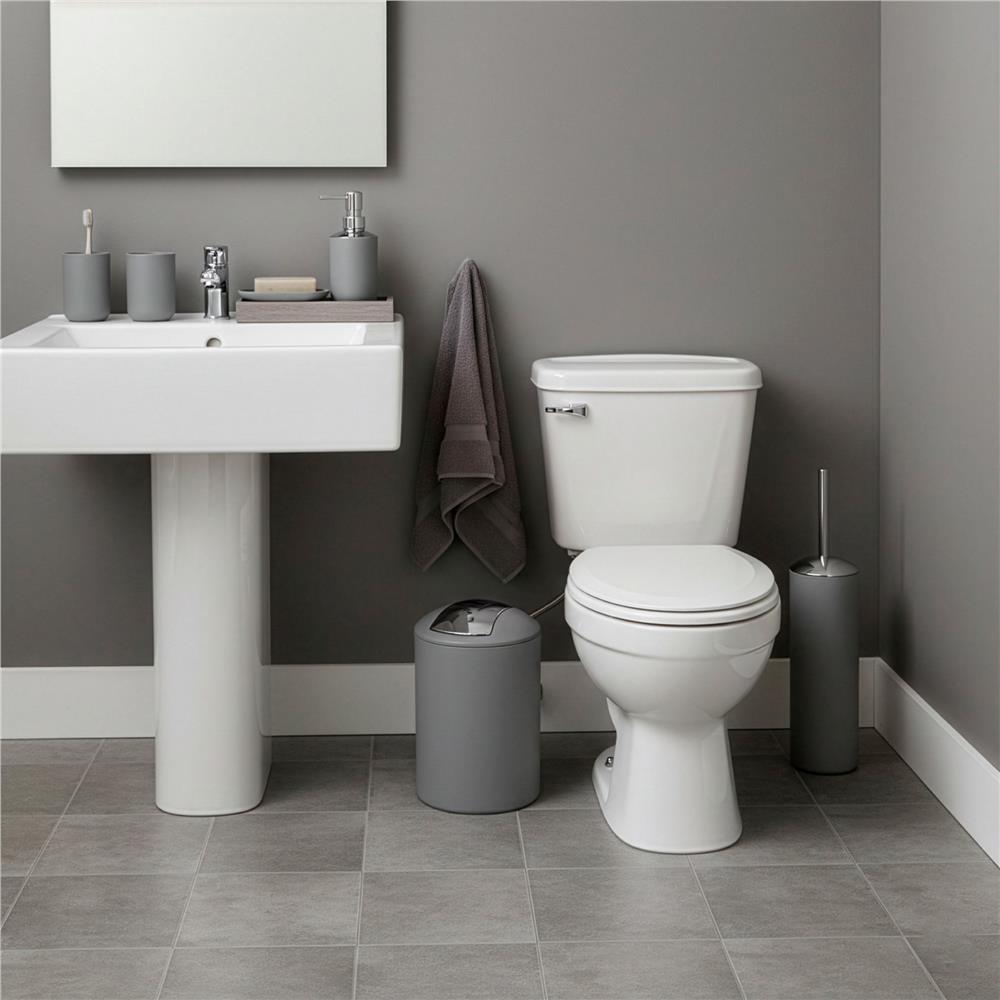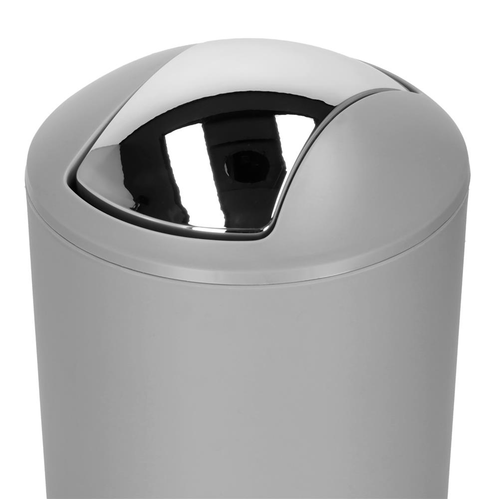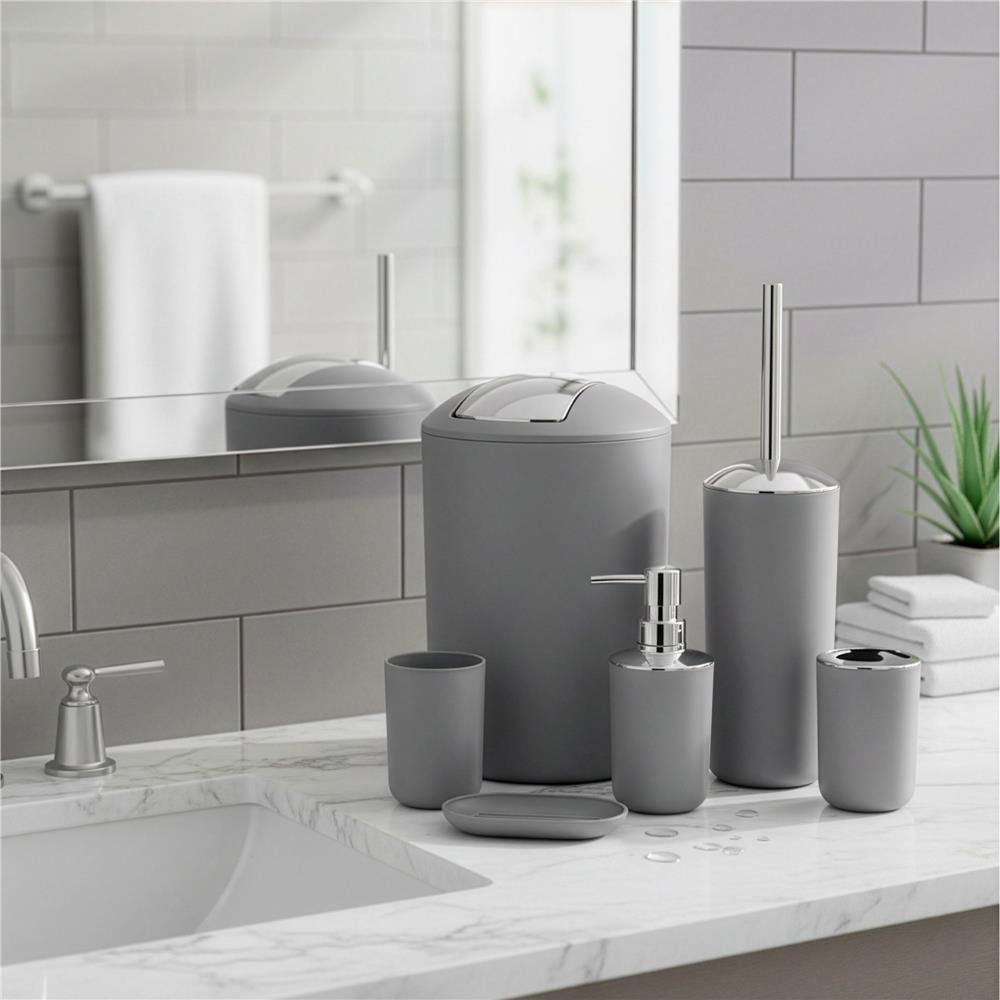 Set accesorii baie, 6 piese din plastic, cu perie WC si cos de gunoi, finisaj mat si lucios, gri argintiu Household NewTrend