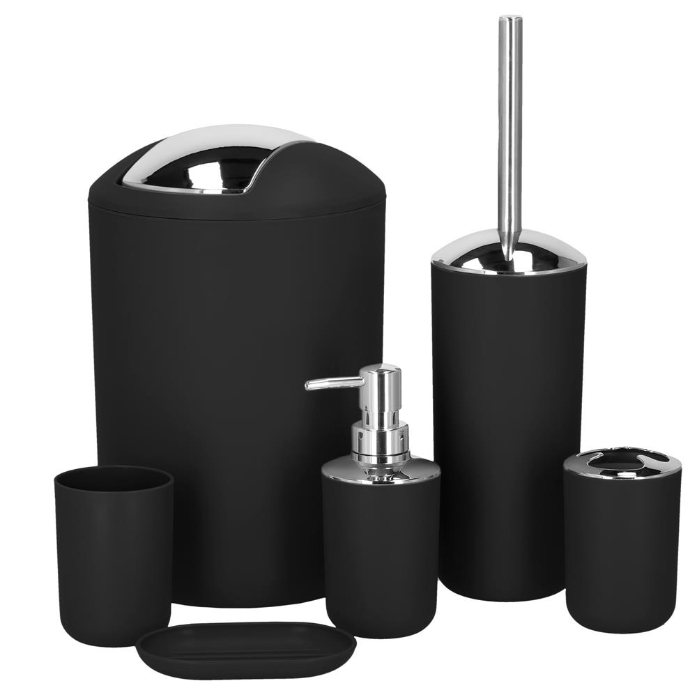 Set accesorii baie 6 piese din plastic, negru argintiu, finisaj mat-lucios