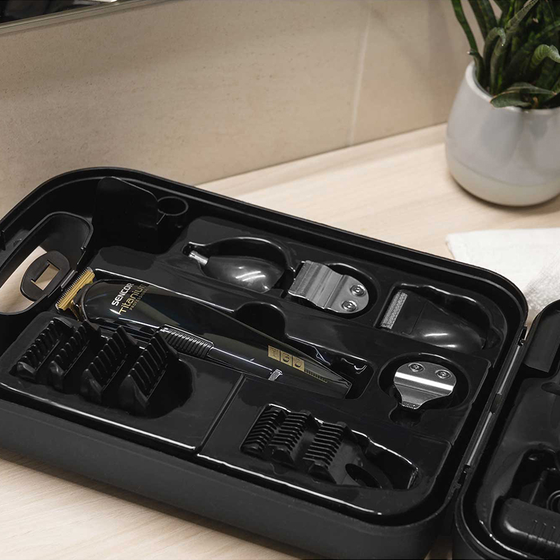 Mașină de tuns multifuncțională care oferă o performanță excelentă într-un design elegant. Este echipată cu un motor silențios de mare viteză, care oferă o performanță excelentă și o durată lungă de viață. Se potrivește perfect în orice mână datorită dimensiunilor ideale și a formei ergonomice, cu un mâner cromat. Nu alunecă și asigură o manevrare confortabilă.