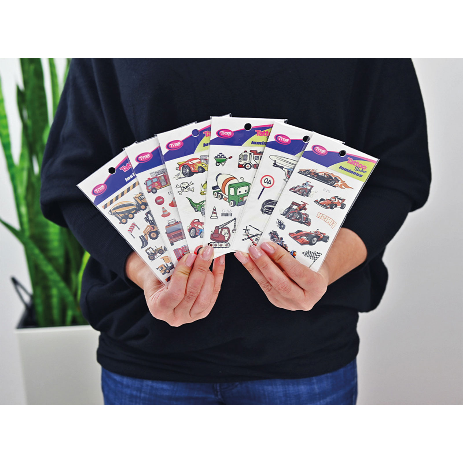 Tot ce este o mașină! Tatuaje ușor de aplicat, simple și spectaculoase cu modele de vehicule, într-un set. Pentru adevărații copii fanatici ai mașinilor. Aceste autocolante cu tatuaje temporare sunt de înaltă calitate, astfel încât își păstrează culoarea și detaliile vii pentru o lungă perioadă de timp, chiar și zile. Sunt ușor de aplicat și îndepărtat fără a irita sau deteriora pielea. 53 tatuaje autocolante pe 6 foi, mașini sport, mașini luminoase, mașini de construcții, pompieri, mașini de poliție. Tot ce este un vehicul!