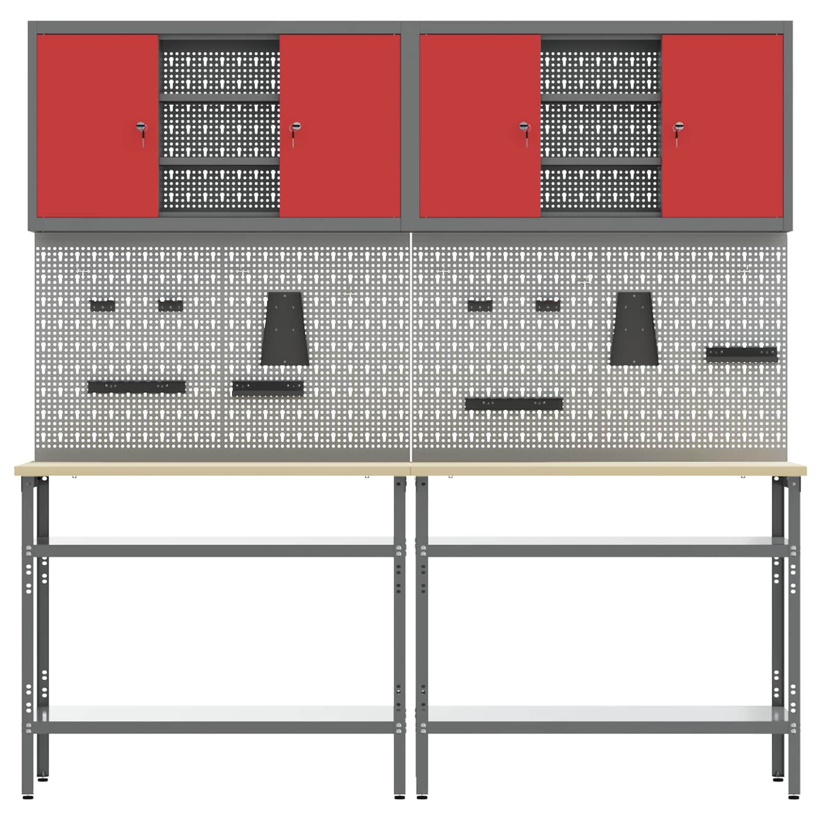 Set banc de lucru cu raft 8 pcs Roșu Oțel vopsit electrostatic GartenMobel Dekor