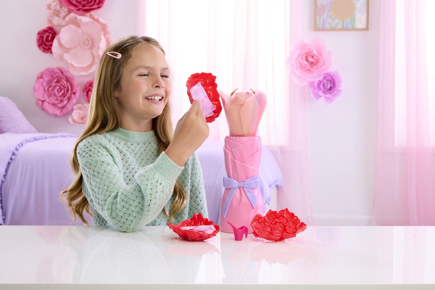 Set Barbie Petal Pop cu papusa, trandafir rosu si accesorii surpriza