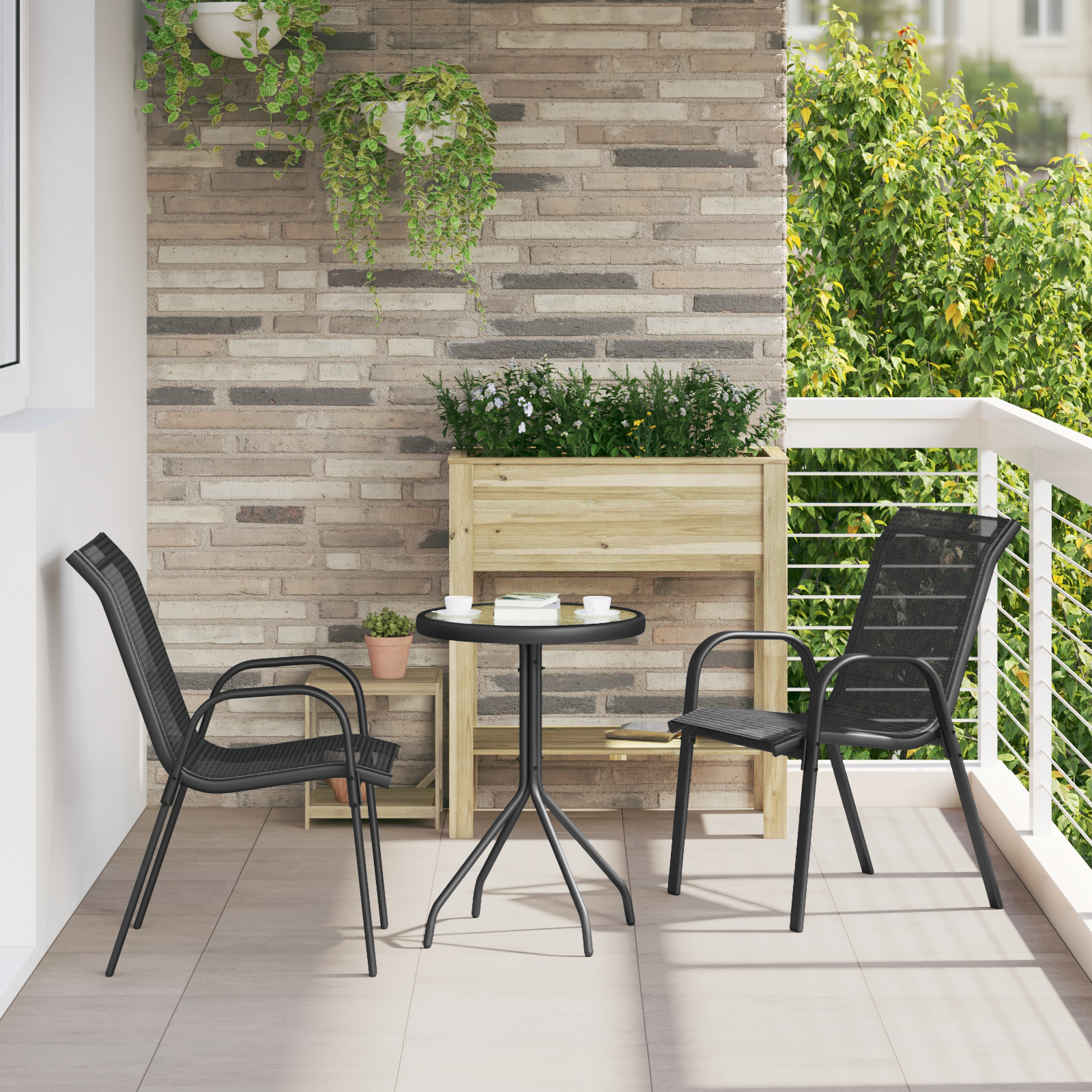 Acest set de Bistro 3 piese combină practicitatea cu stilul, perfect pentru a savura mese sau băuturi afară. Designul modern în nuanțe de negru dă o atmosferă plăcută pe balcon sau terasă, oferind un loc excelent pentru relaxare și socializare.