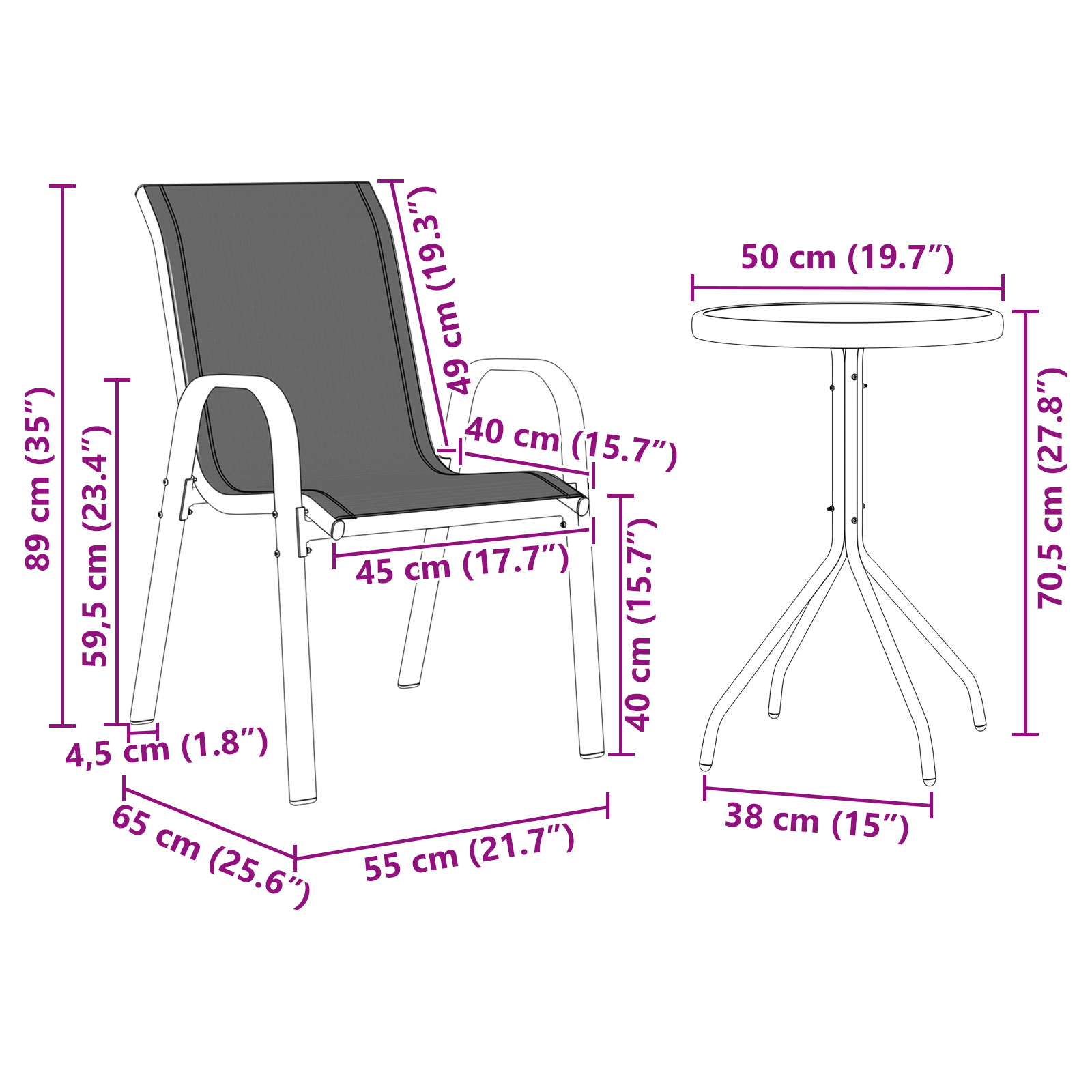 Set Bistro 3 Piese Negru Textilenă și Oțel GartenMobel Dekor