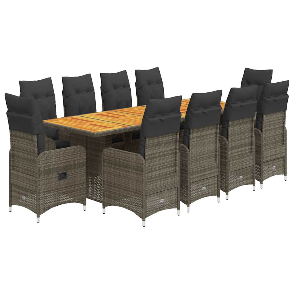 Set bistro de grădină cu perne, 11 piese, gri, poliratan GartenMobel Dekor