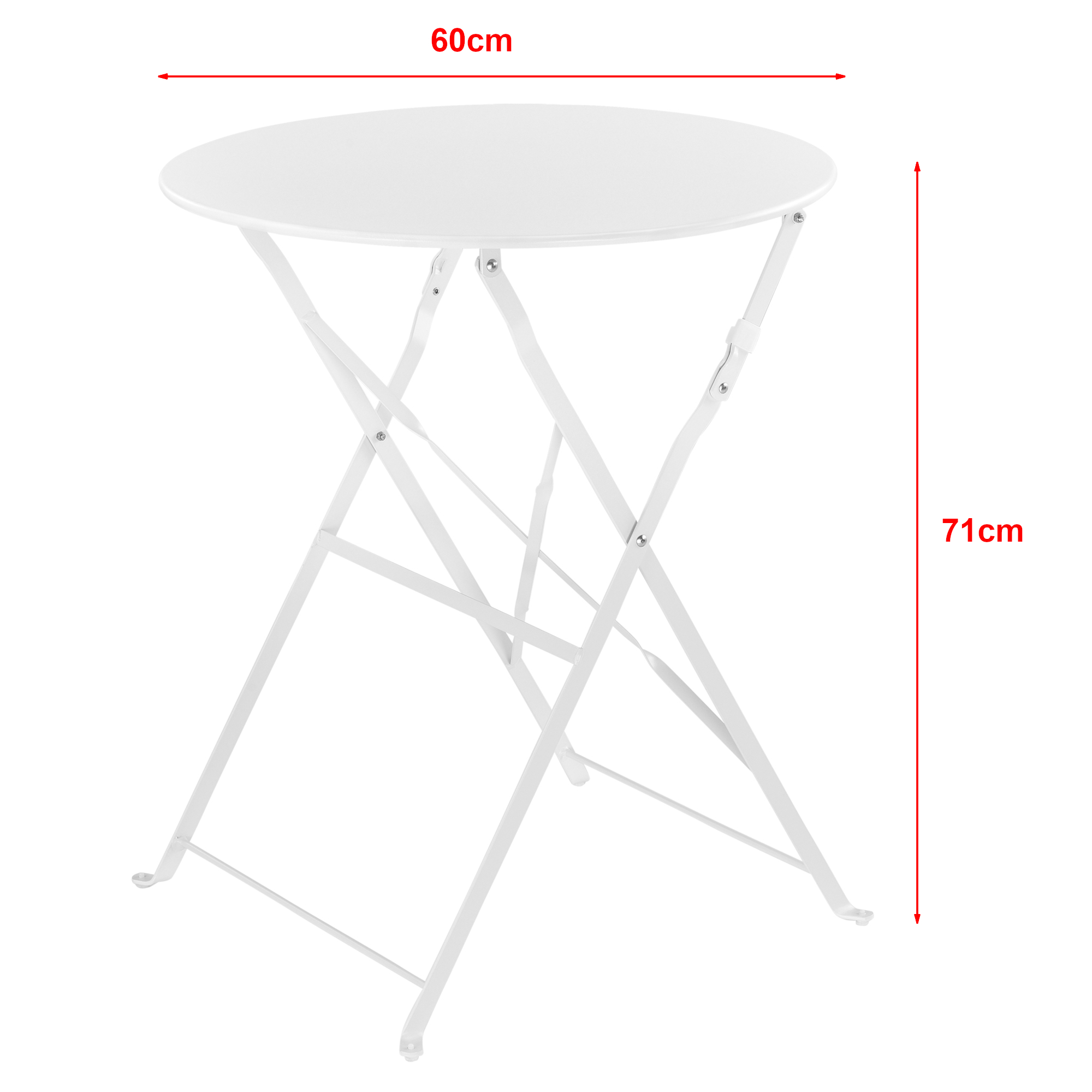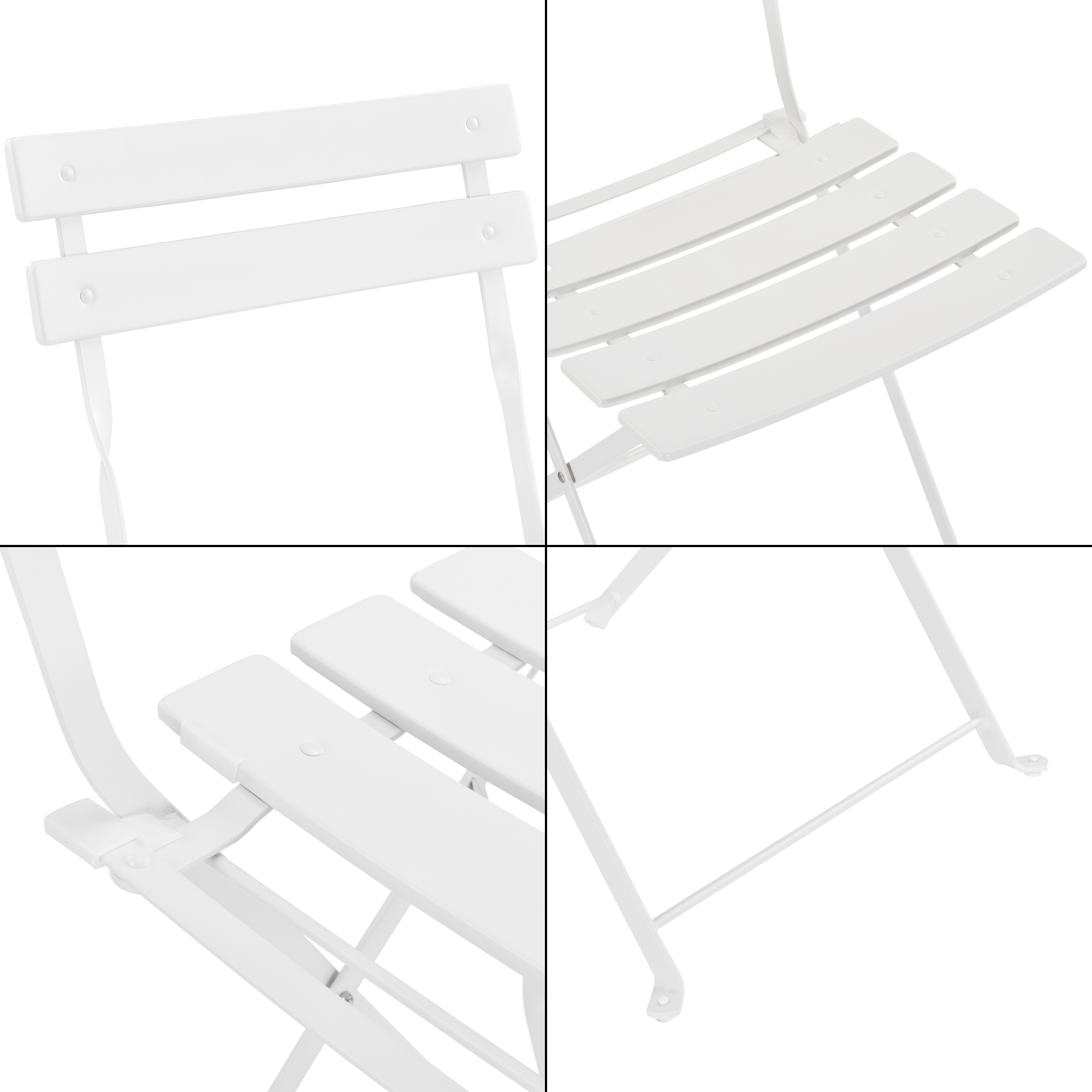 Datorită construcției din oțel și a designului pliabil, setul este simplu de folosit, de mutat și de depozitat atunci când nu este utilizat. Nuanța albă oferă un aspect curat și luminos, perfect pentru un decor modern, romantic sau minimalist în grădină, pe terasă sau balcon.