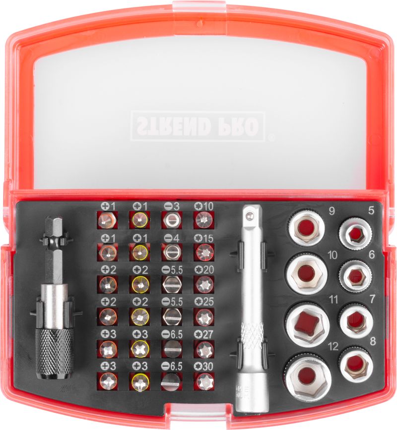 Set biți și tubulare Strend Pro, 34 piese, 25 mm, S2/CrV, cu suport