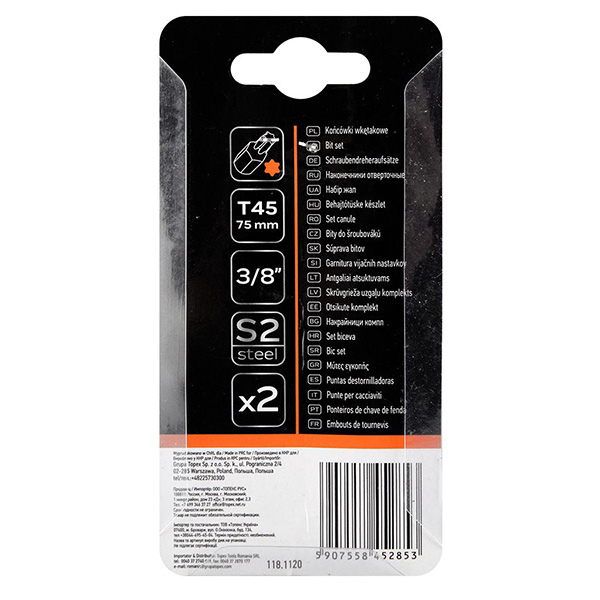 Descriere Set biti torx T45X75mm, 3/8" NEO
