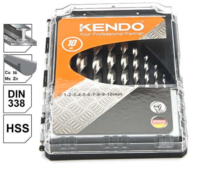 Set burghie elicoidale pentru metal KENDO HSS 1-10 mm, 10 piese