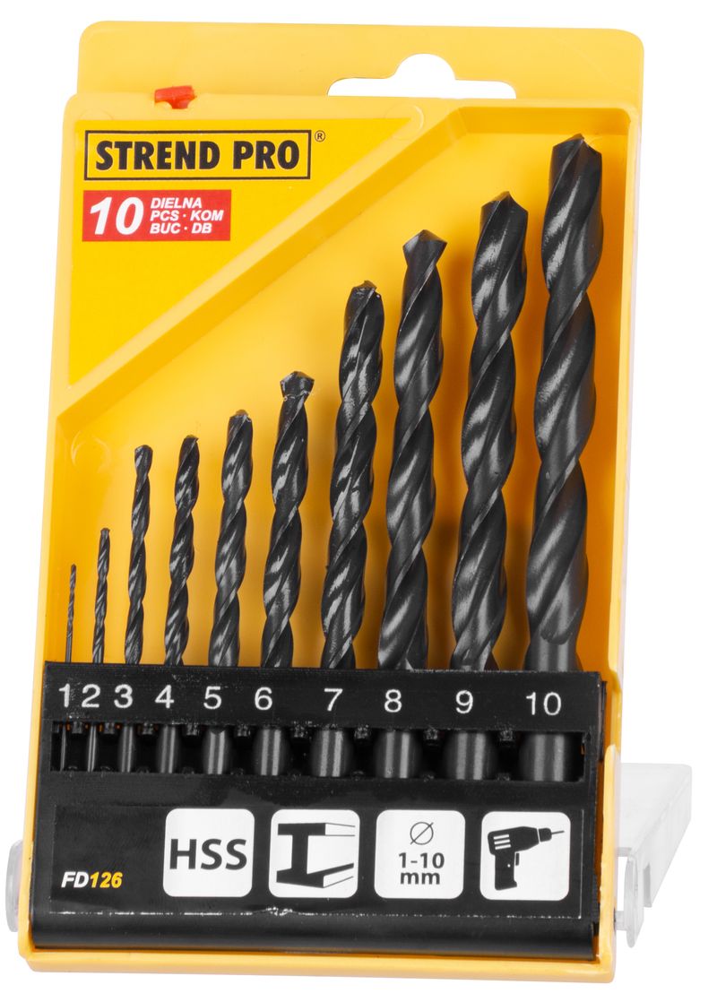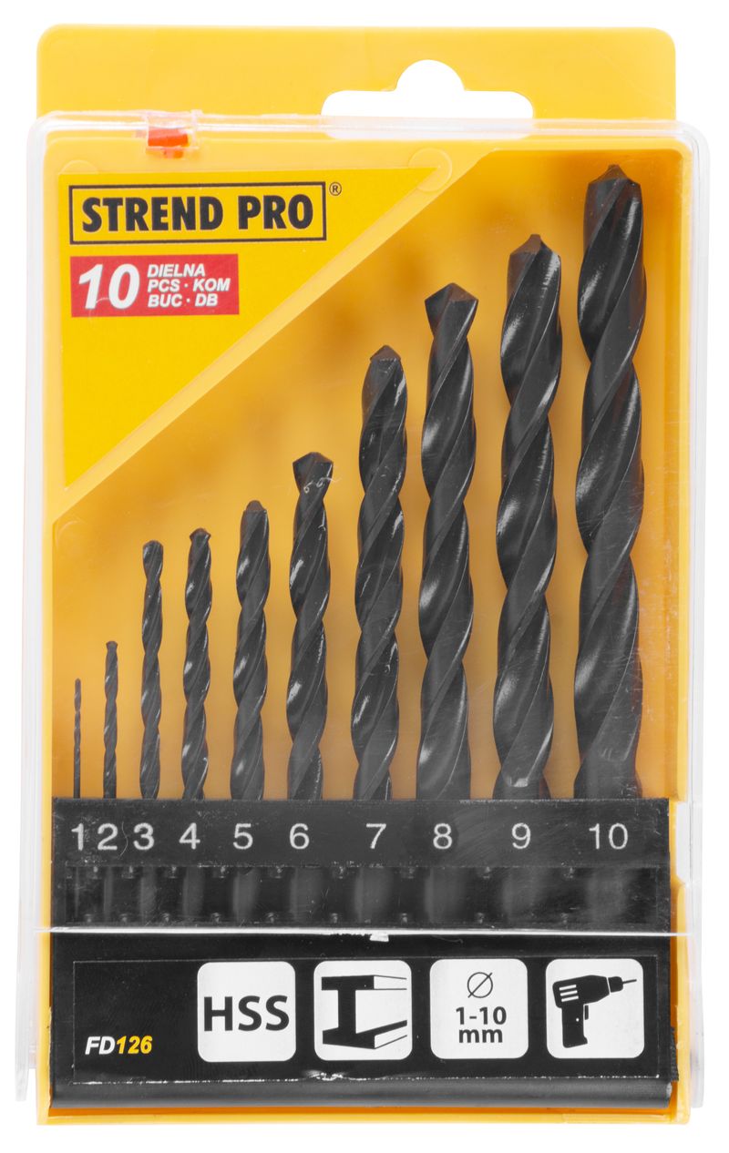 Set burghie HSS pentru metal Strend Pro FD126, 10 piese, 1–10 mm