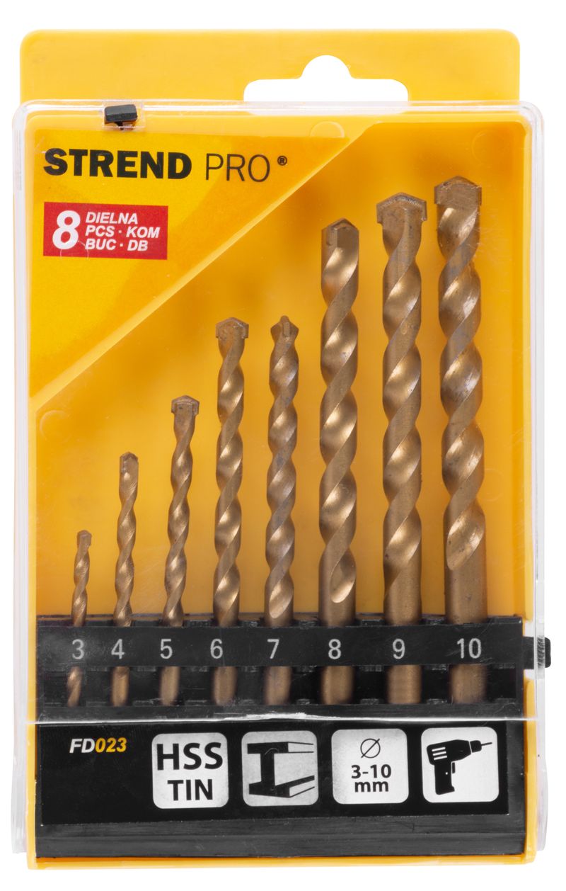 Set burghie pentru zidărie Strend Pro FD023, 8 piese, 3–10 mm, TiN