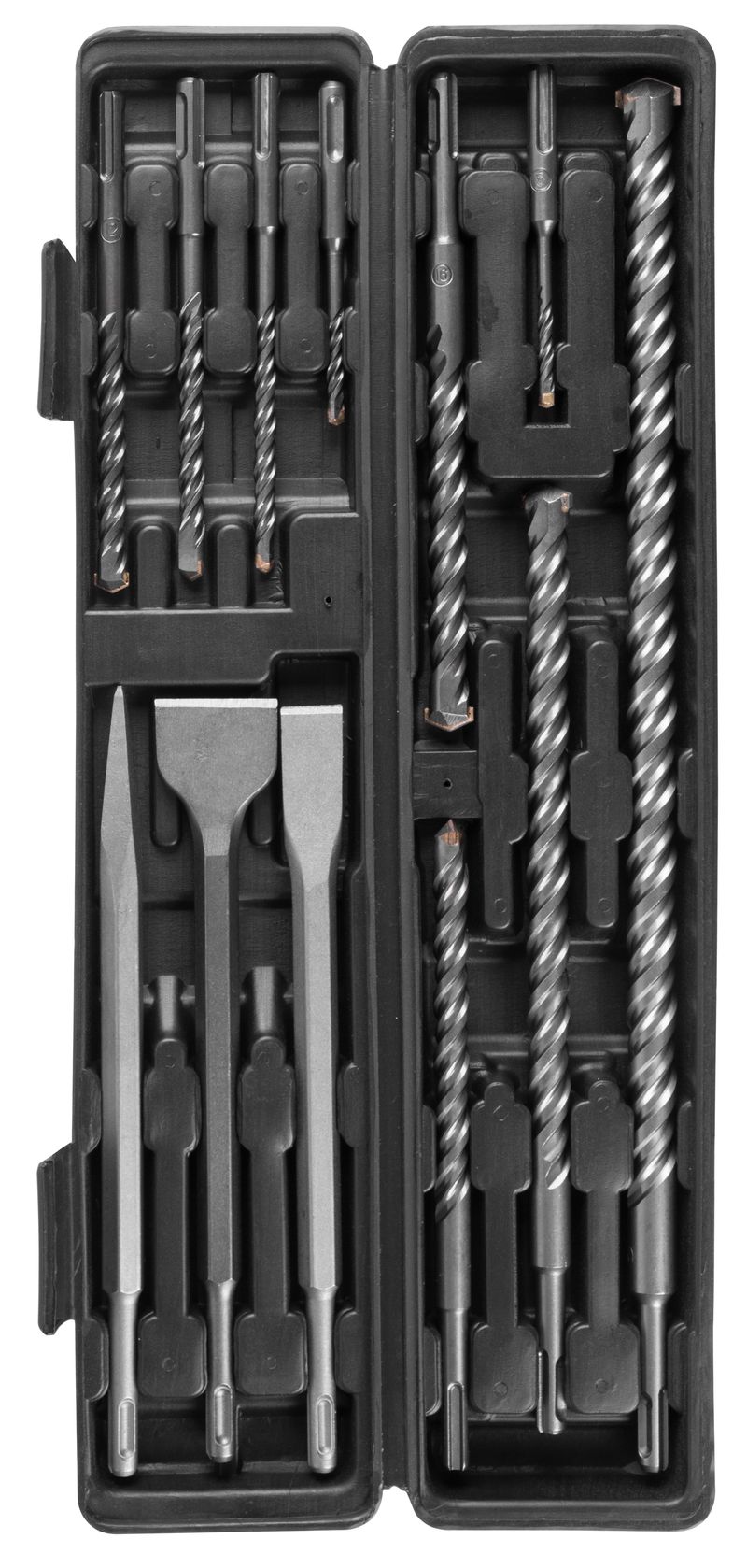 Setul Strend Pro SD043 cu prindere SDS+ este alegerea potrivită pentru lucrări de găurire și dăltuire în beton și zidărie. Primești burghie în dimensiuni uzuale, plus dălți (vârf și plate) pentru decopertări și canelări, toate organizate într-o cutie de transport practică.