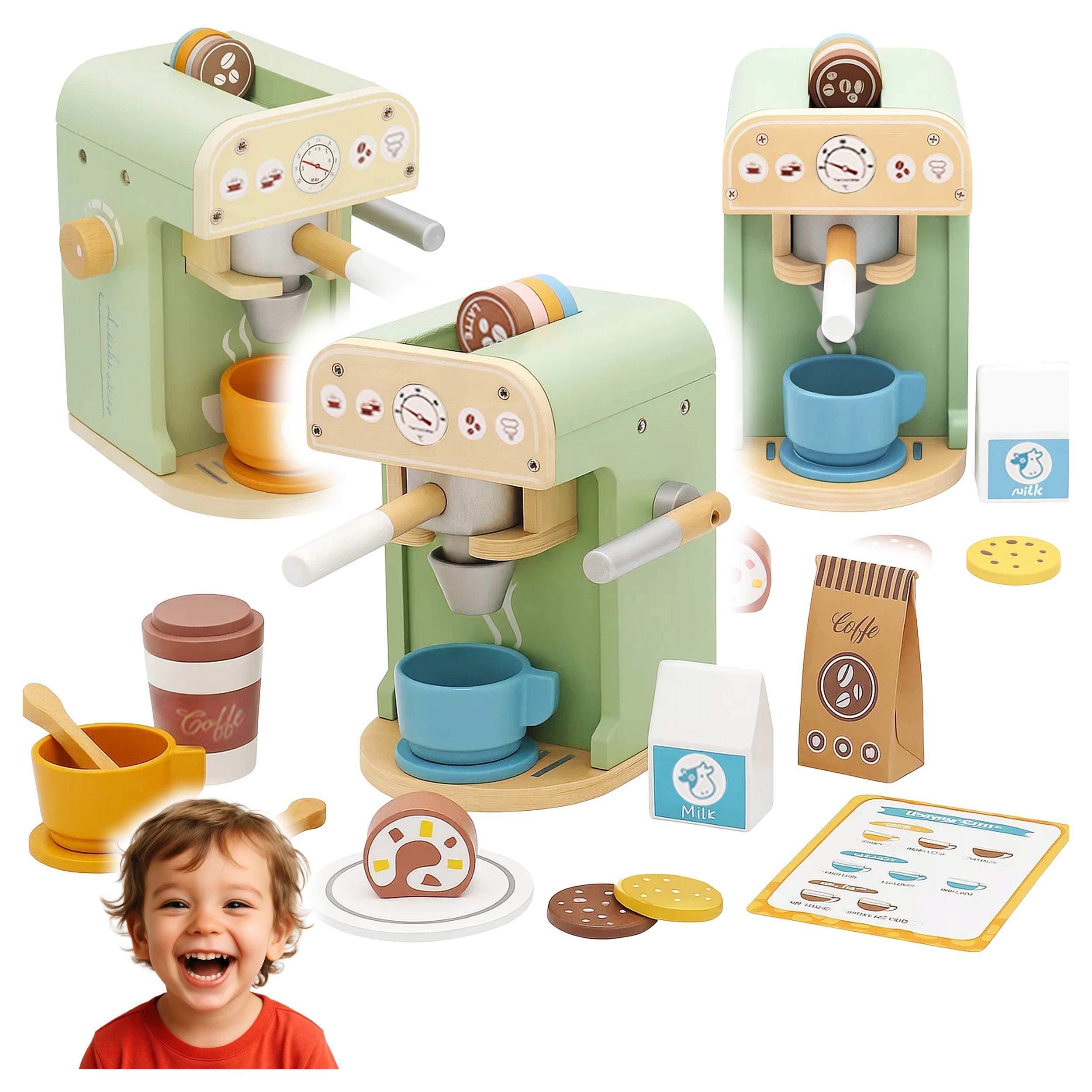 Descriere Set cafenea lemn copii espressor accesorii,