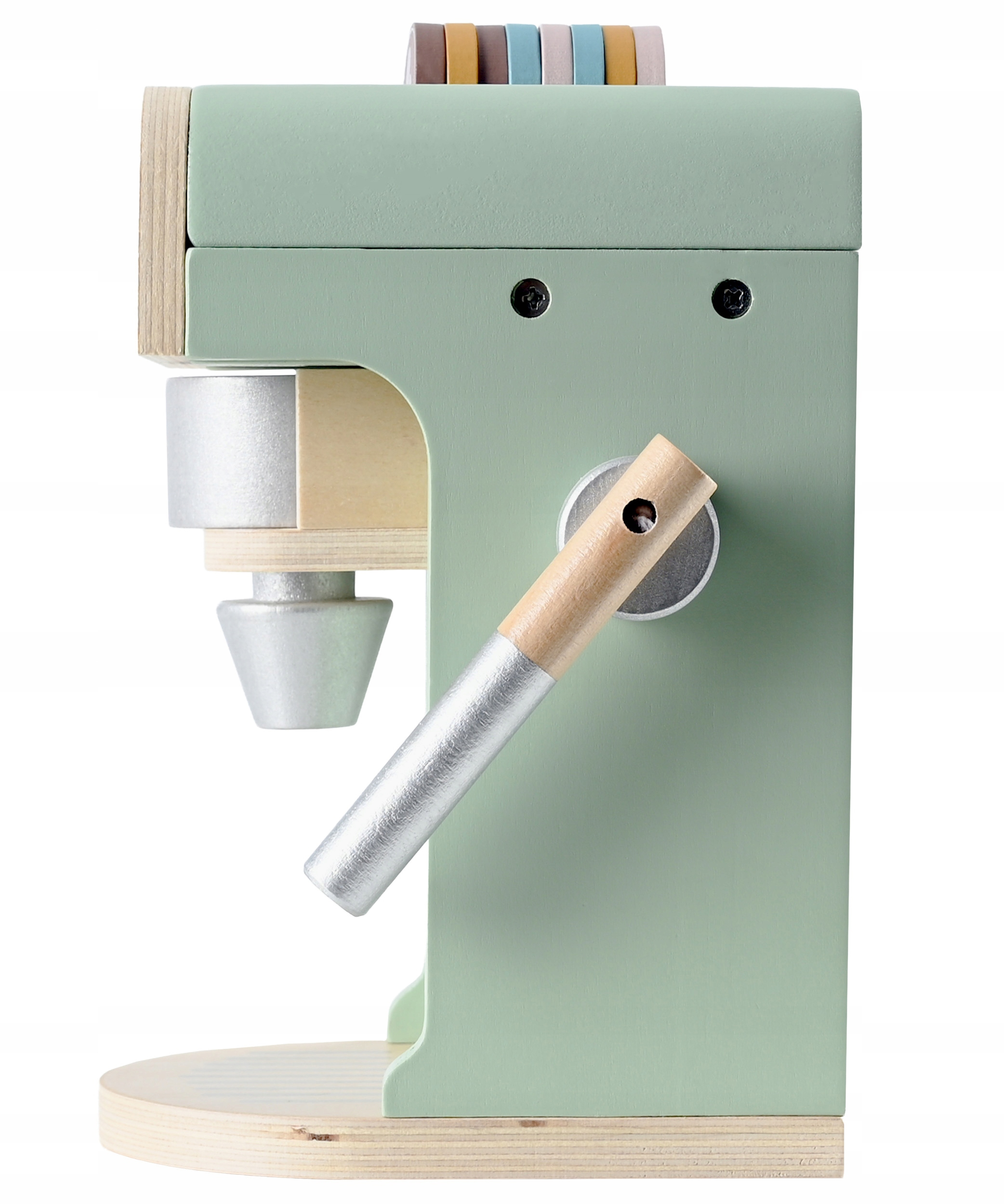 Set cafenea din lemn pentru copii cu espressor si accesorii, multicolor, 20 cm