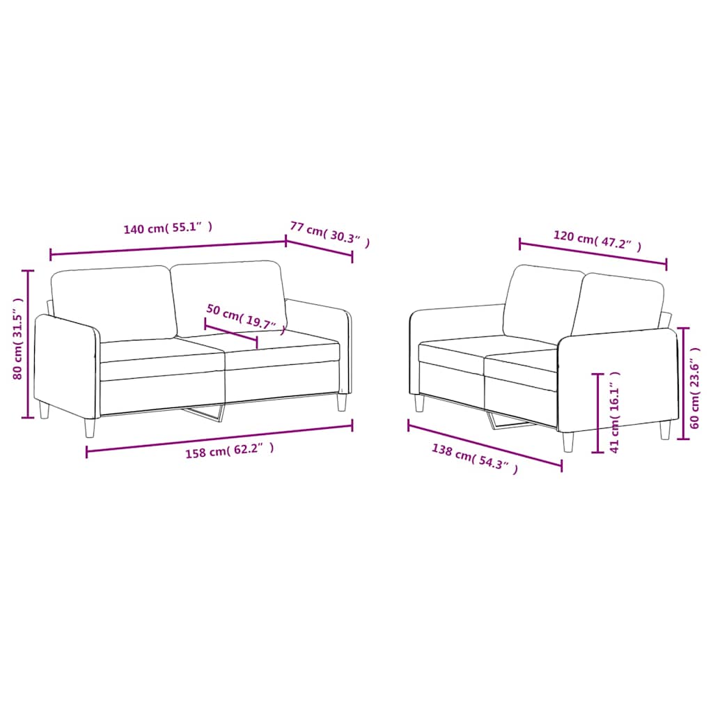 - Canapea cu 2 locuri (120 cm):
