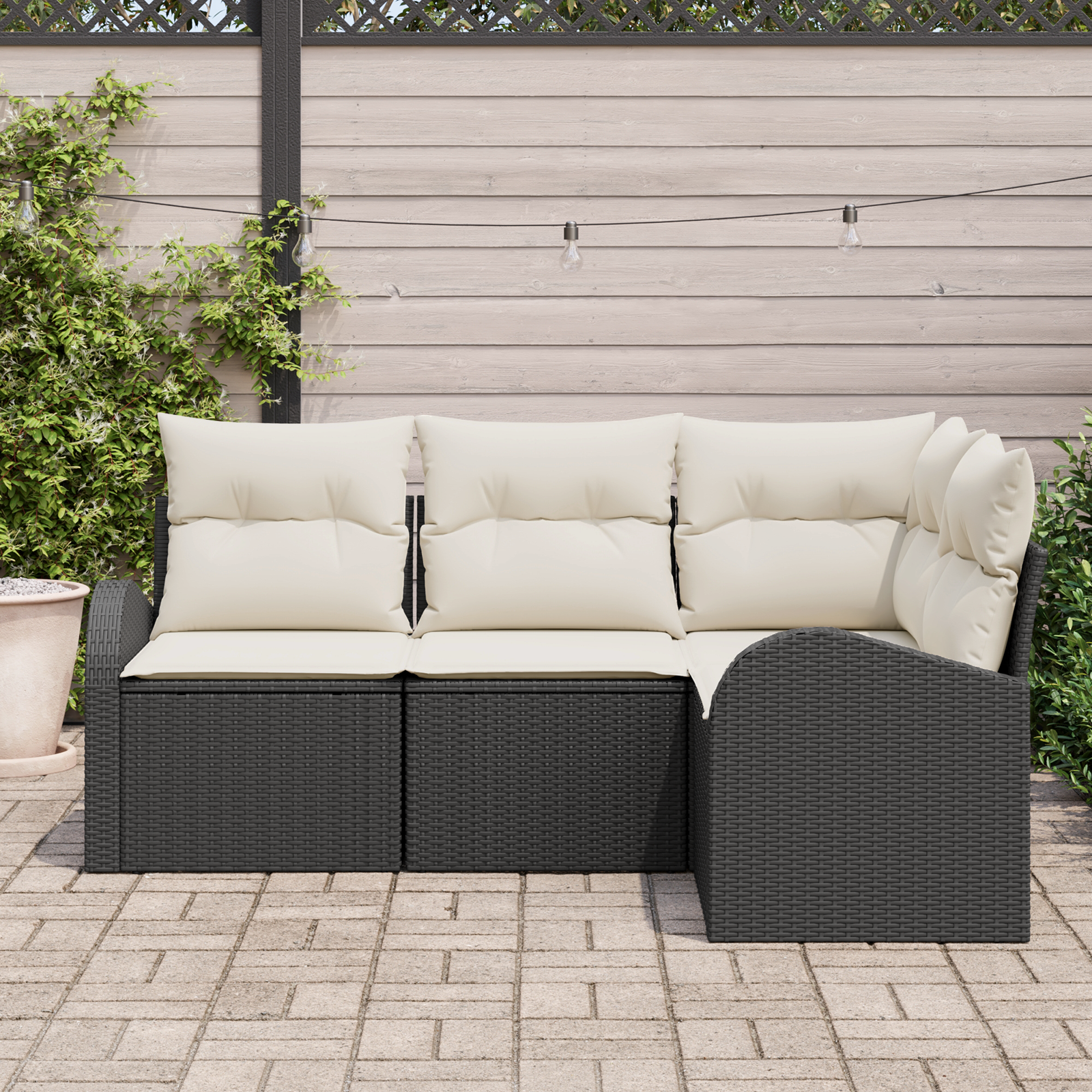 Setul ăsta de canapele secționale de exterior îmbină stilul cu confortul fără efort. Perfect pentru grădini sau terase, arată modern și poate fi aranjat în funcție de cum îți place afară.