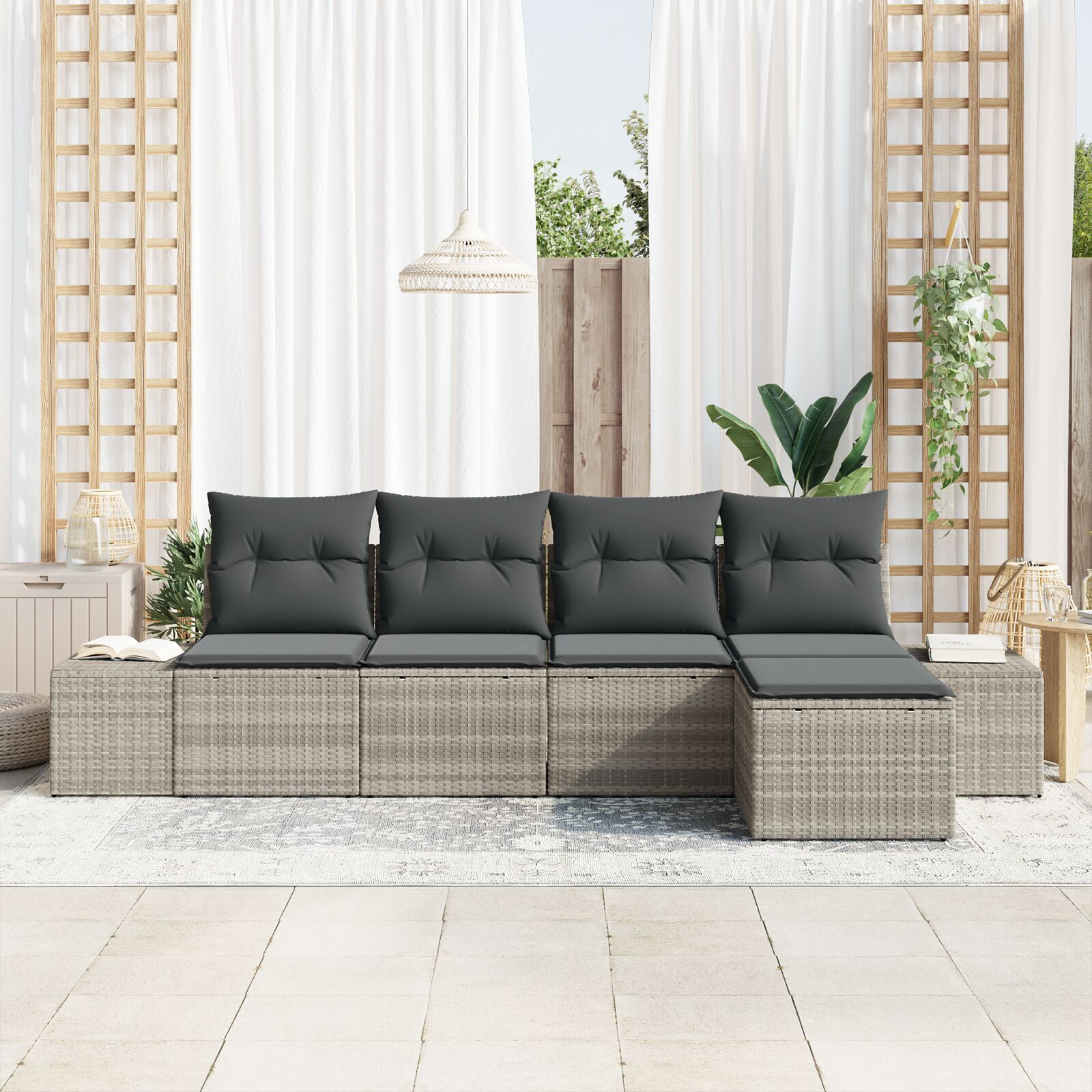 Set Canapea 5 Piese cu Perne Gri Deschis Poliratan GartenMobel Dekor