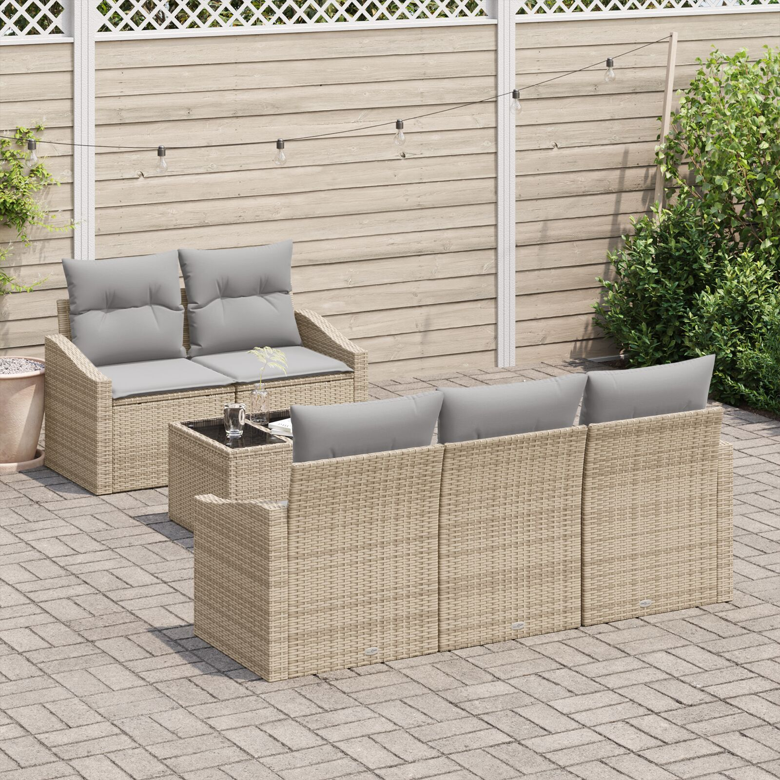 Set canapea 6 piese cu perne bej din ratan poli GartenMobel Dekor