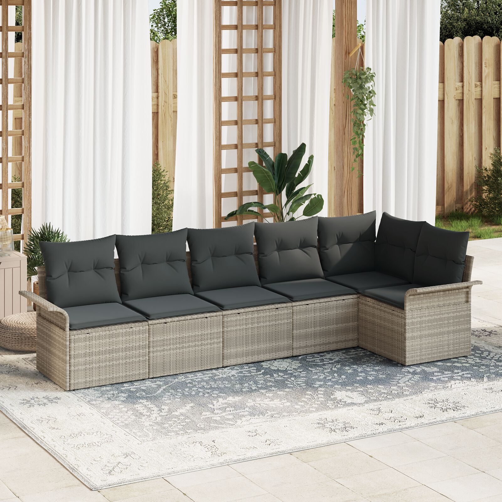 Set Canapea 6 Piese Grădină cu Perne Gri Deschis Poliratan, Canapea 2 Locuri Grădină cu Depozitare & Perne Gri Deschis Poliratan GartenMobel Dekor