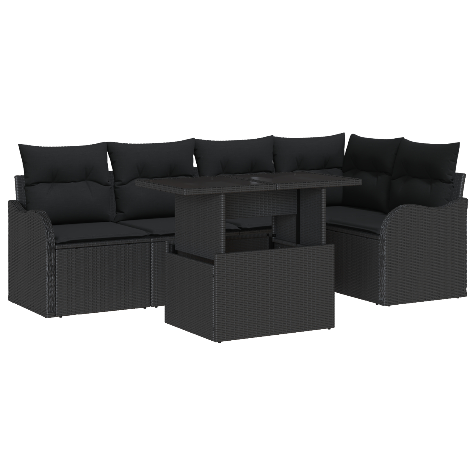 Set canapea 6 piese grădină cu perne poliratan negru, Canapea 2 locuri grădină cu perne poliratan negru GartenMobel Dekor
