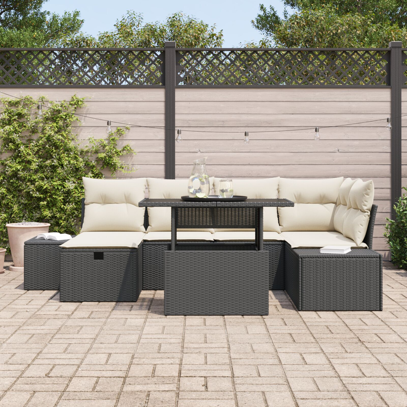 Set canapea 7 piese grădină cu perne Ratan Poli Negru GartenMobel Dekor
