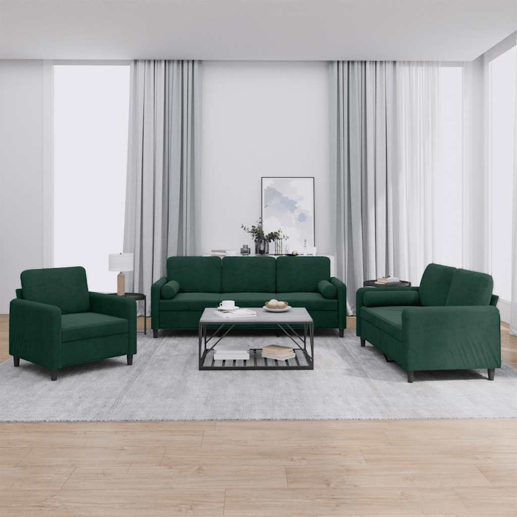 Set canapea cu perne, 3 piese, verde închis, catifea GartenMobel Dekor
